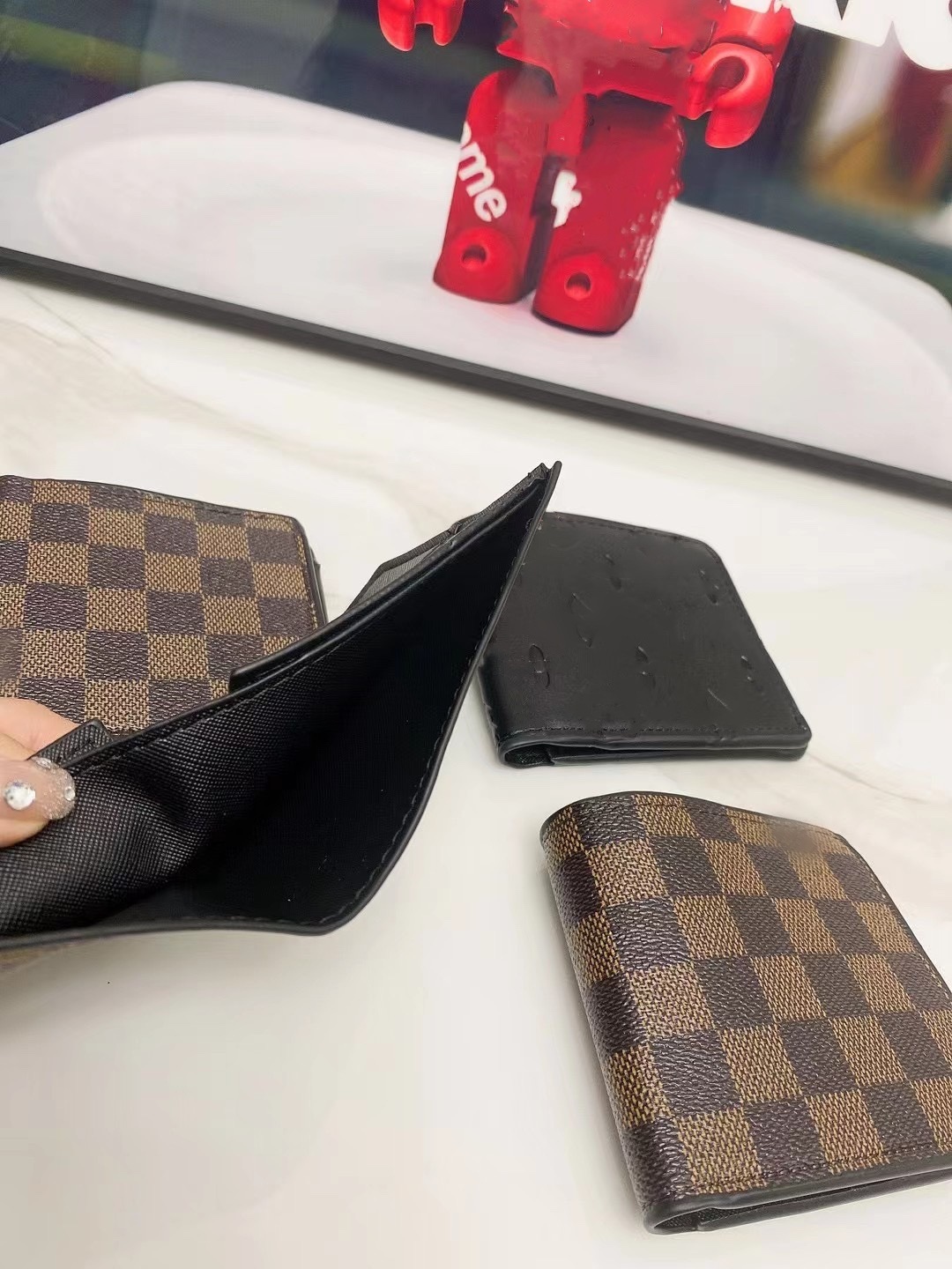 다양한 카드 슬롯이 있는 대외 무역 국경 간 신작 남성용 지갑, 유럽과 미국의 클래식 스타일, 인기 카드 홀더, 격자 무늬 짧은 클립 비즈니스스토어 가기
