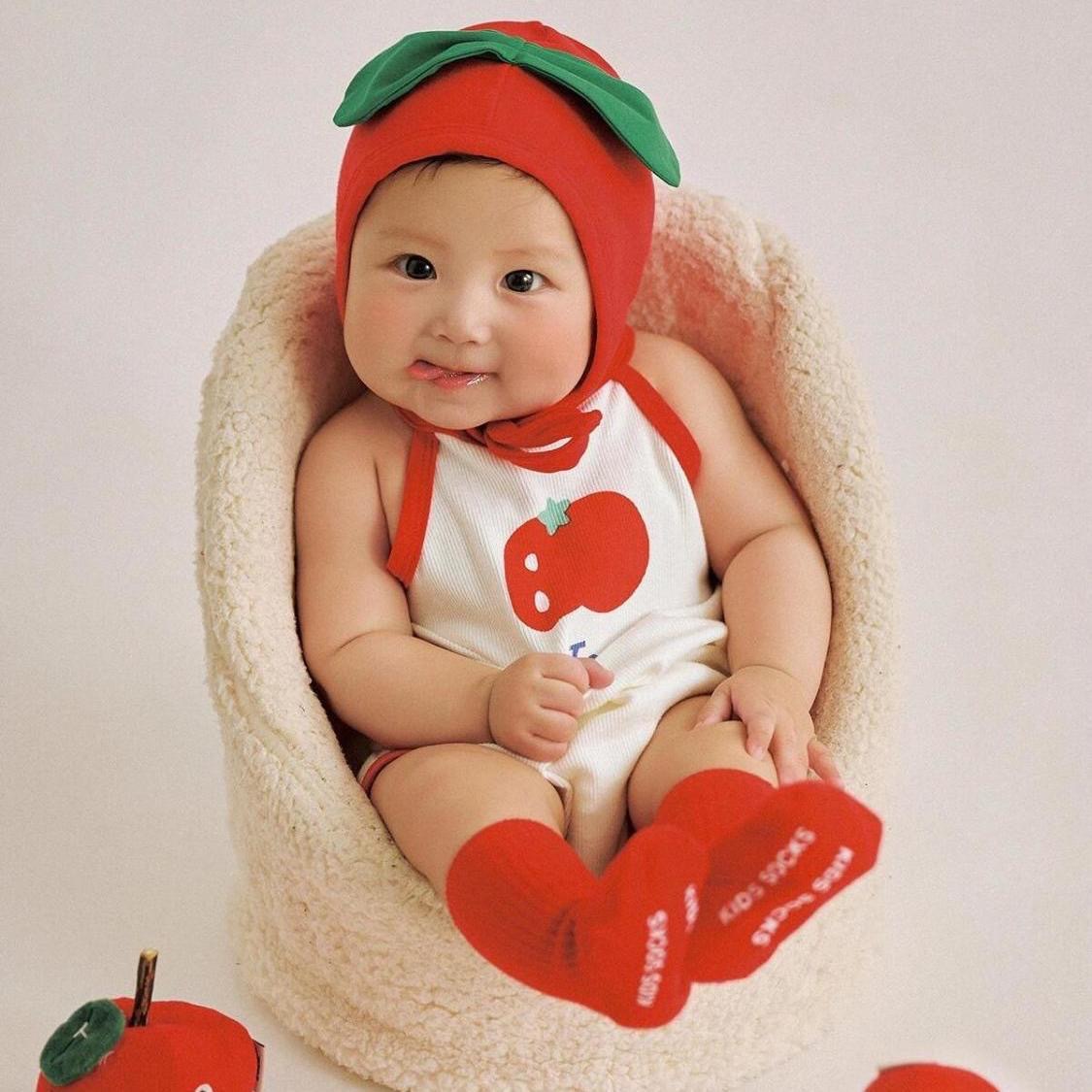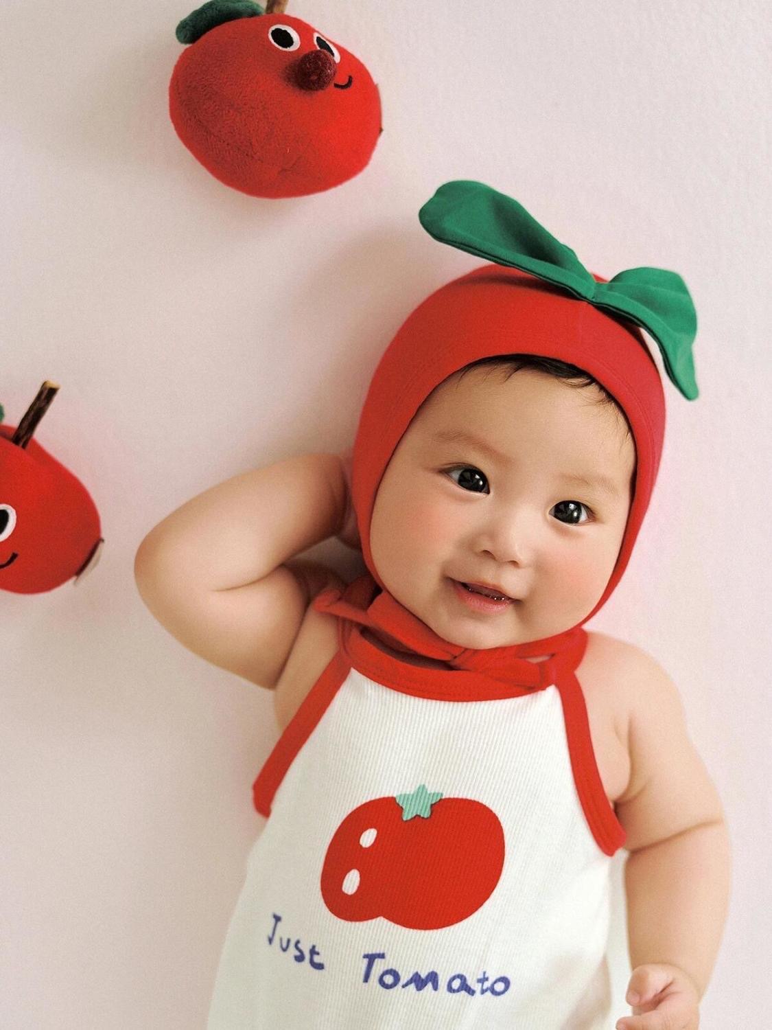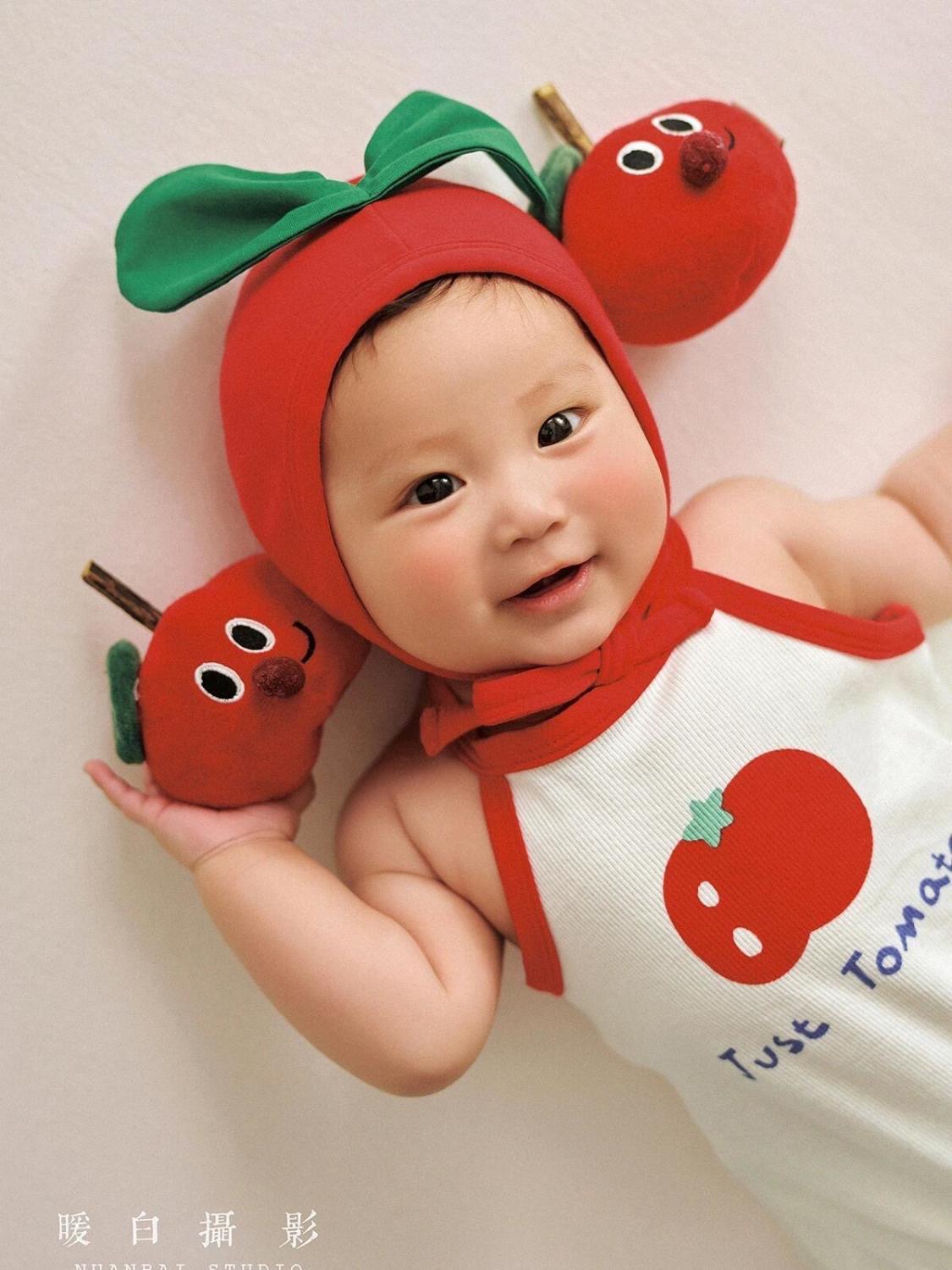 토마토 만화 스타일 어린이 사진 촬영복 아기 100일 사진 1세 사진 유아복 전원풍