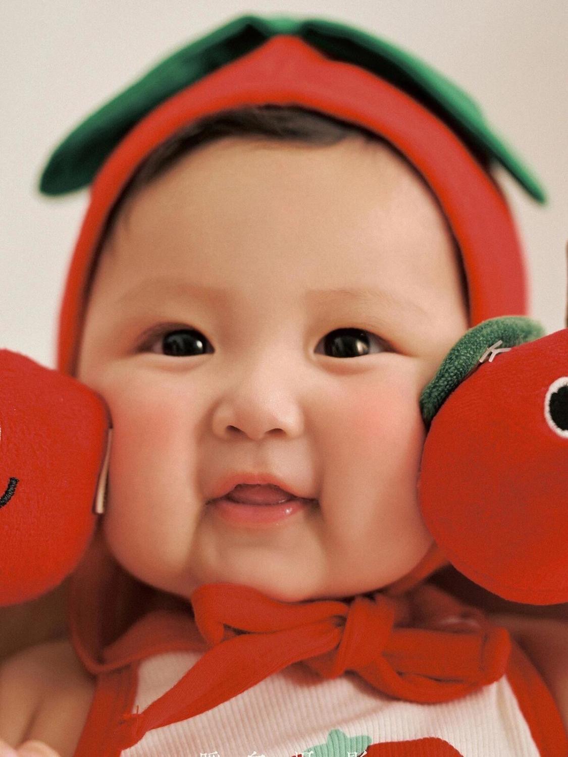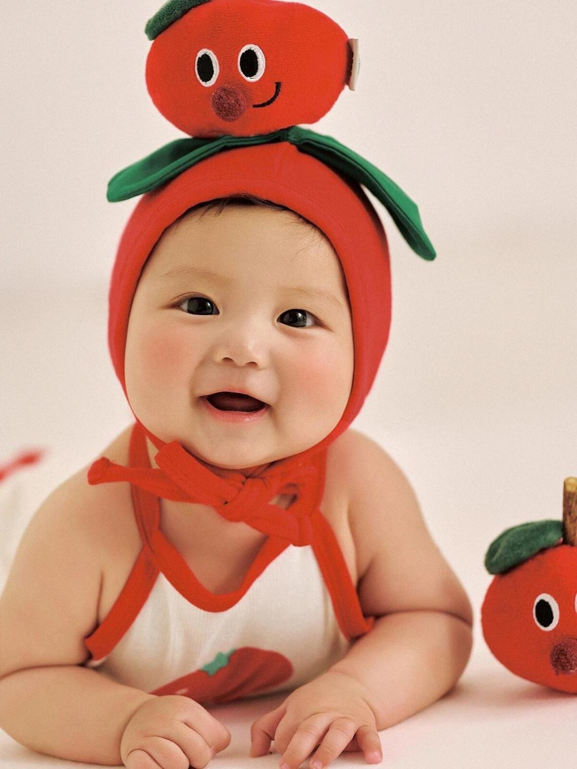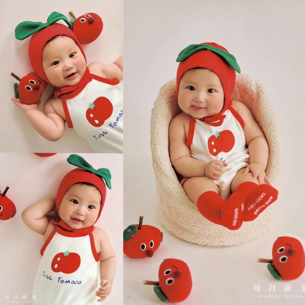 토마토 만화 스타일 어린이 사진 촬영복 아기 100일 사진 1세 사진 유아복 전원풍