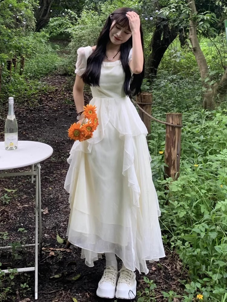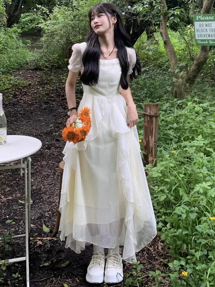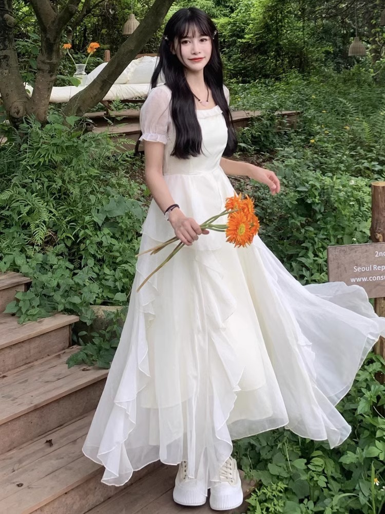 차 브레이크 프랑스 스타일 슈퍼 요정 아름다운 첫사랑 원피스 여성의 여름 해변 휴가 젠틀 탈출 공주 요정 긴 원피스