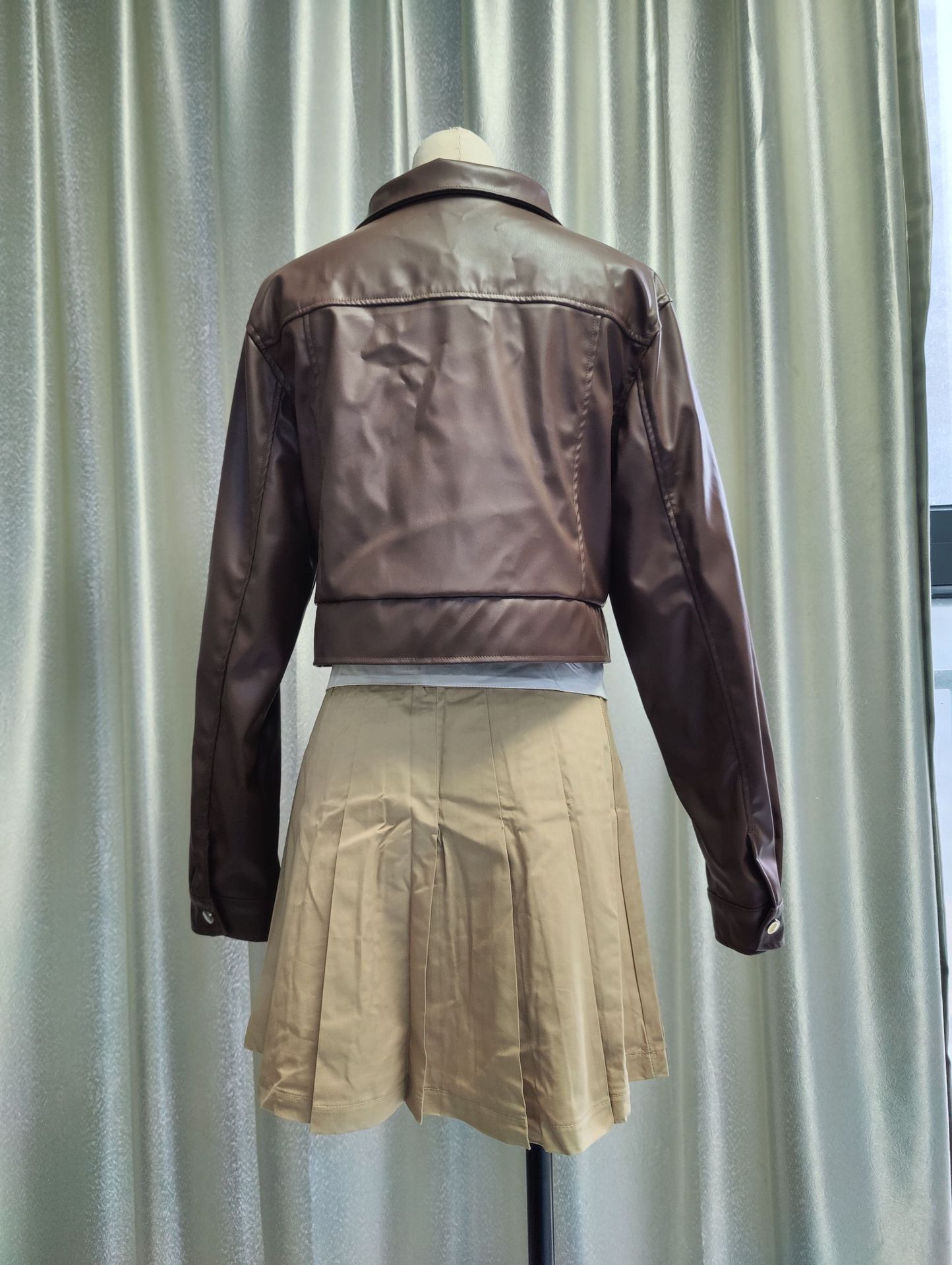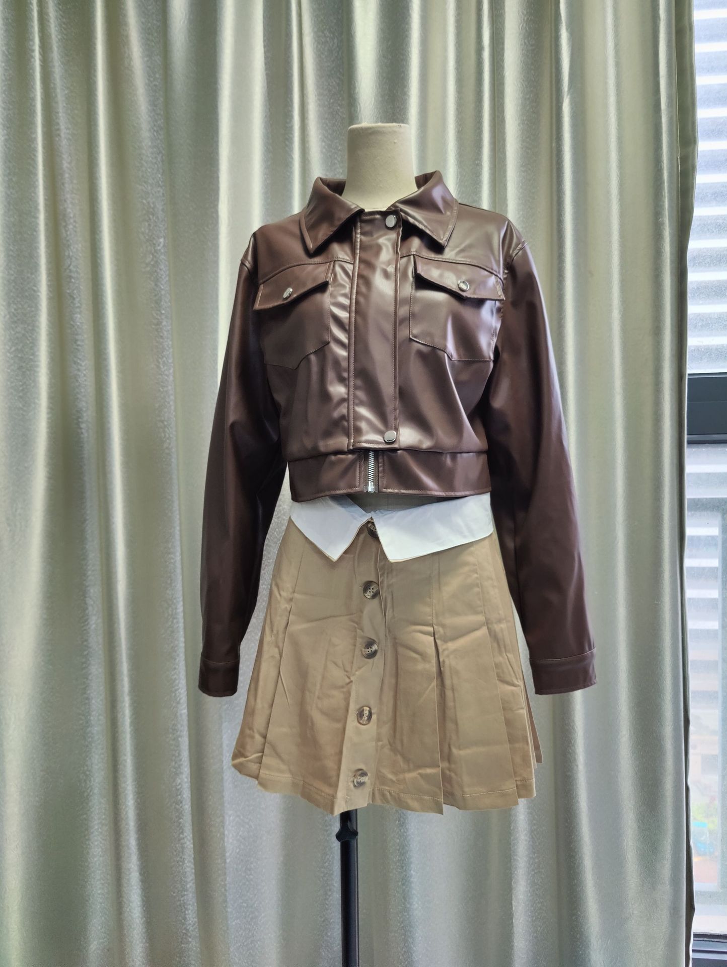 특별 제공 AliExpress Cross-Border 2025 봄 여름 신작 여성 싱글 브레스트 스플라이싱 미니 플리츠 스커트스토어 가기