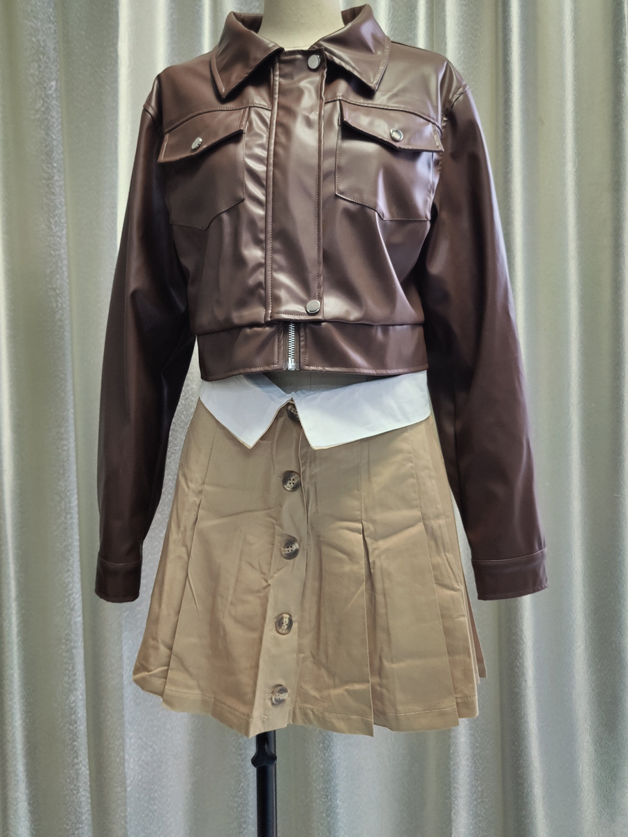 특별 제공 AliExpress Cross-Border 2025 봄 여름 신작 여성 싱글 브레스트 스플라이싱 미니 플리츠 스커트
