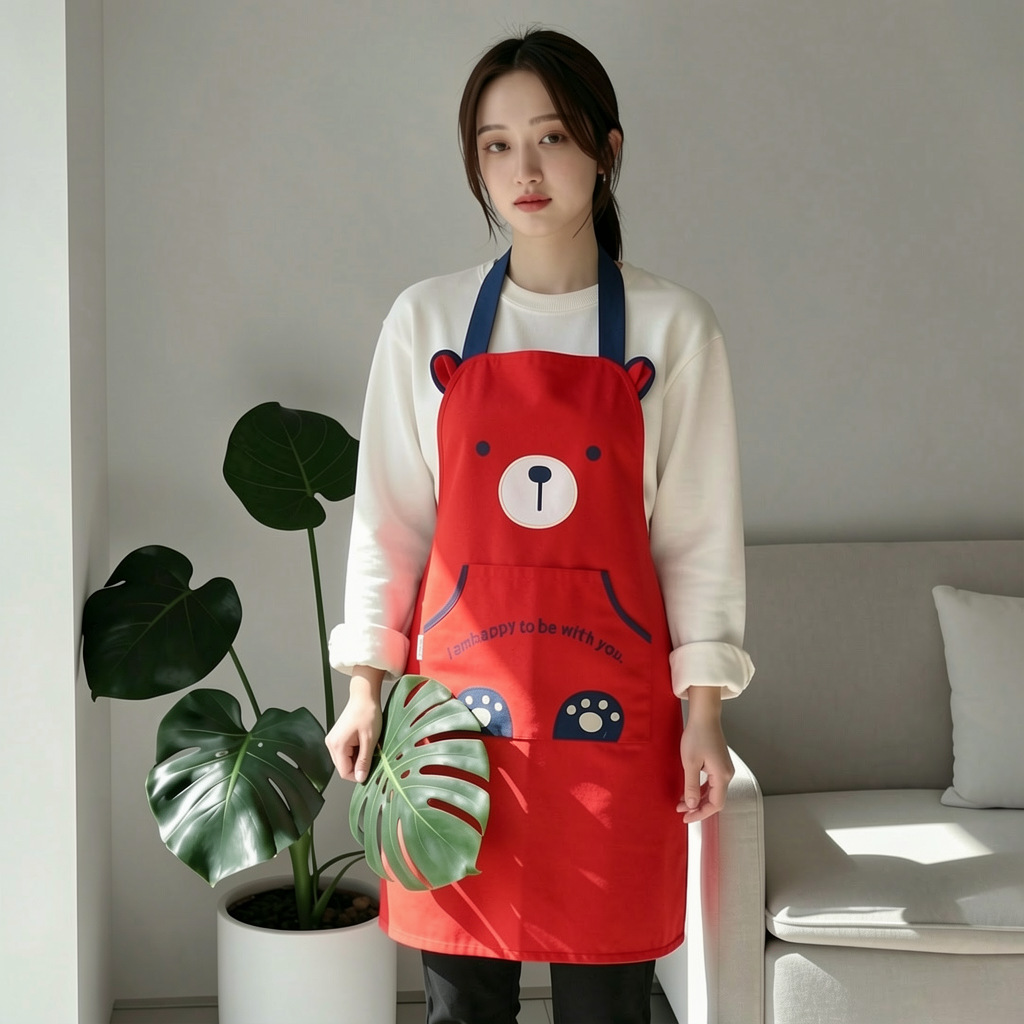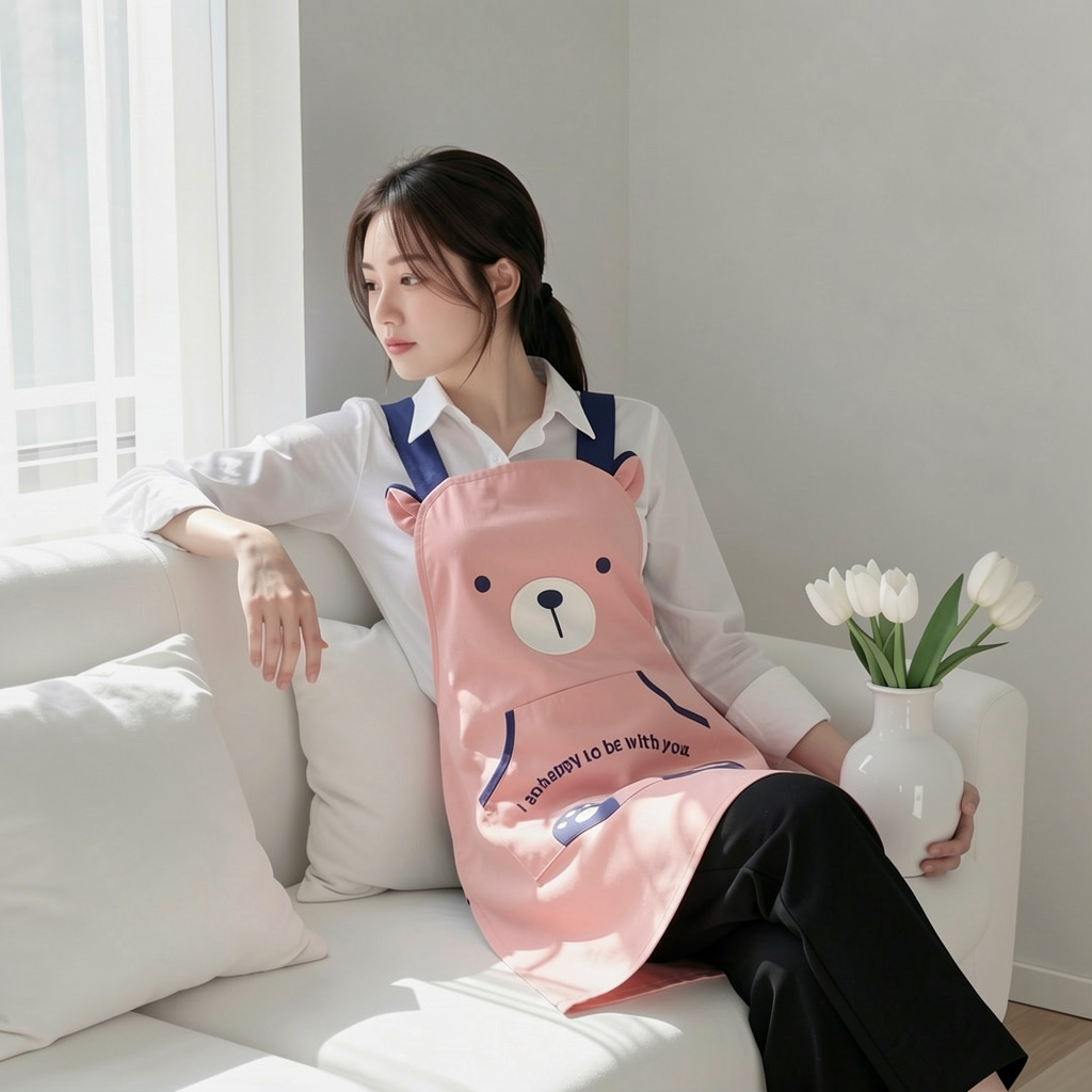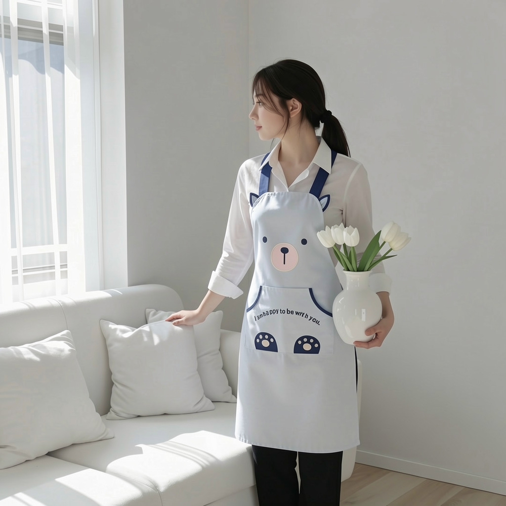[자체 디자인] 앞치마, 예쁜 만화 곰돌이 디자인, 커피숍, 꽃집, 순면 가정용 방오 작업복