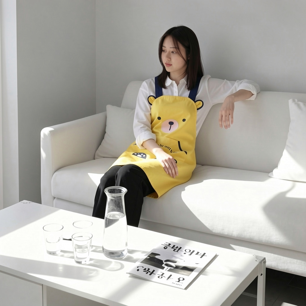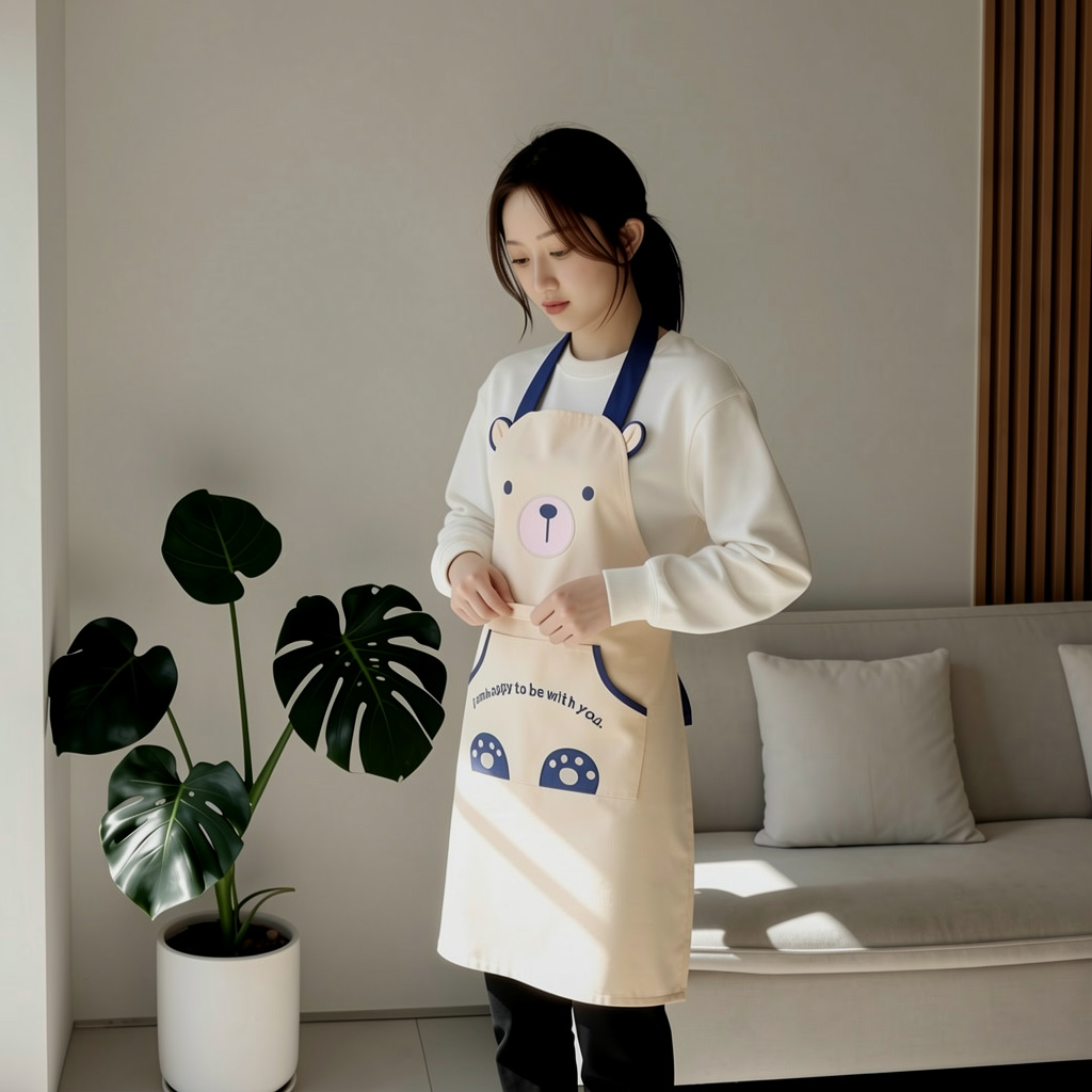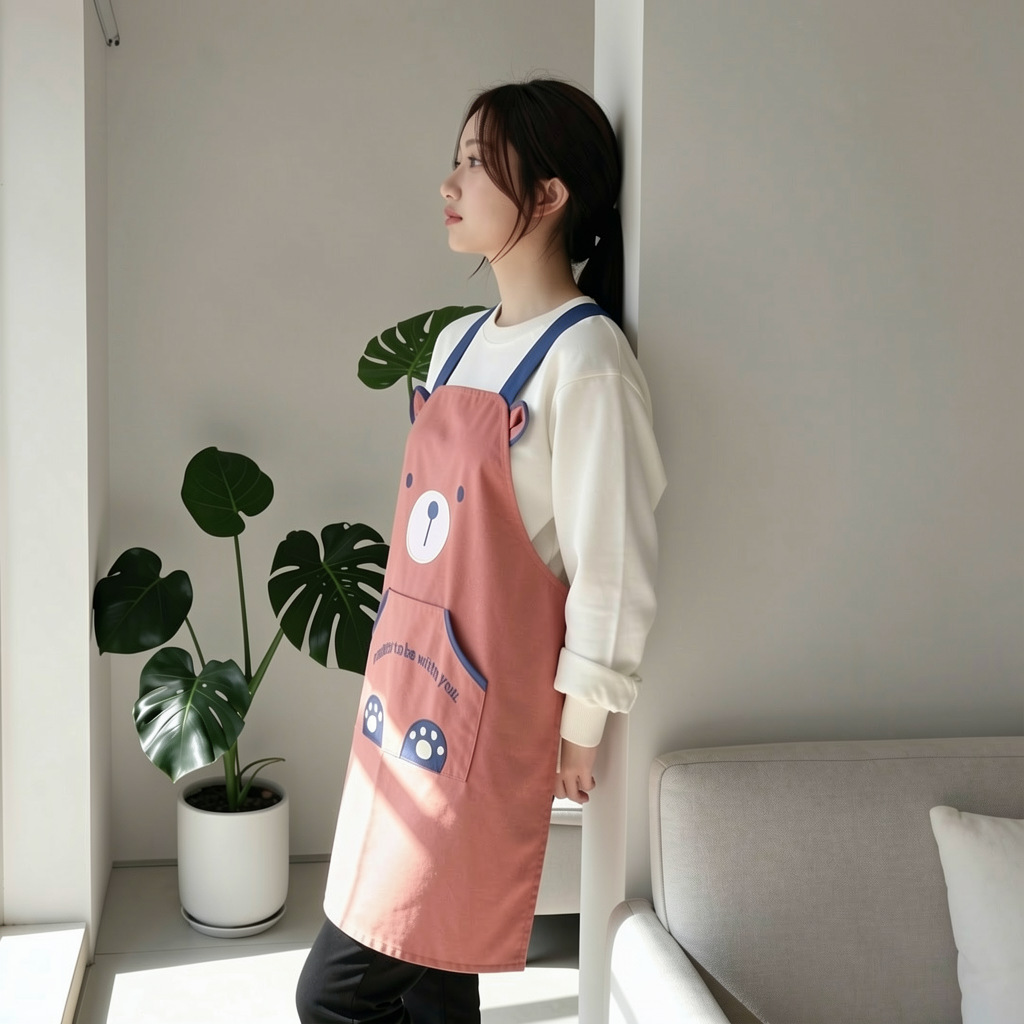 [자체 디자인] 앞치마, 예쁜 만화 곰돌이 디자인, 커피숍, 꽃집, 순면 가정용 방오 작업복