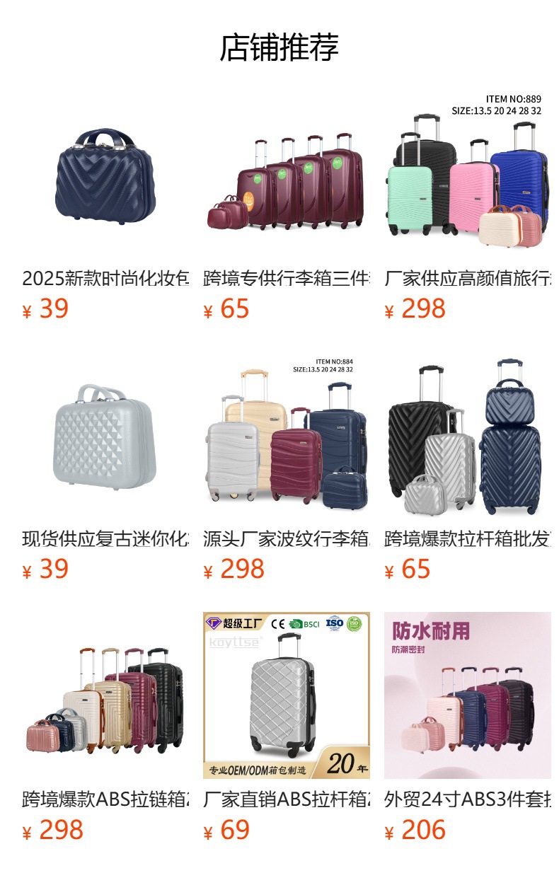 외국 무역용 고급스러운 ABS 여행가방 도매 2025 다기능 고급형 회전바퀴 레버형 비밀번호 여행가방스토어 가기