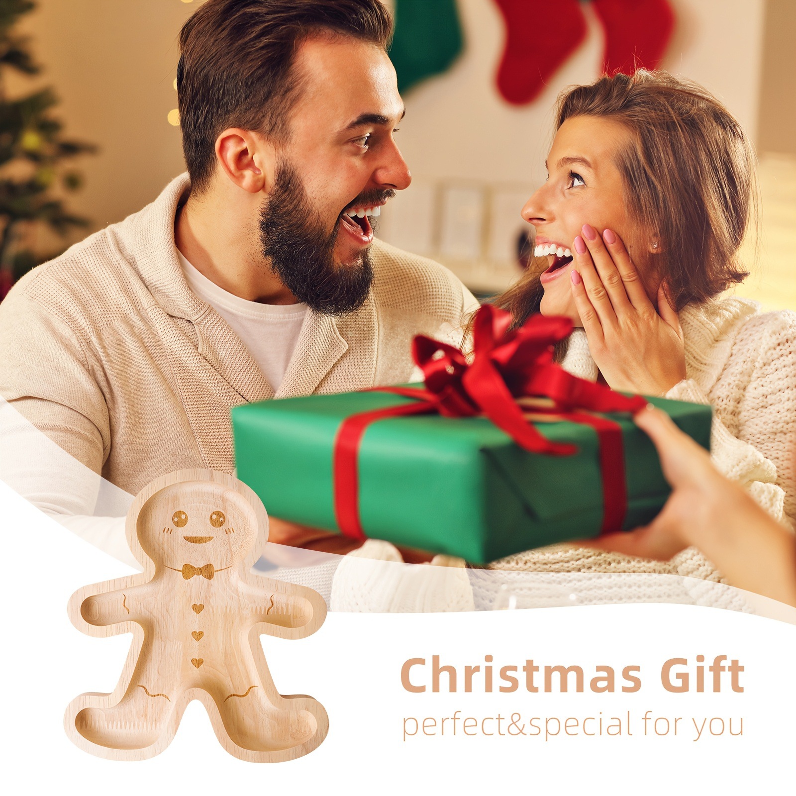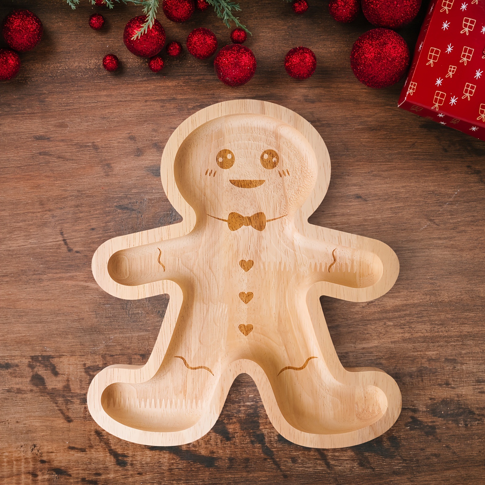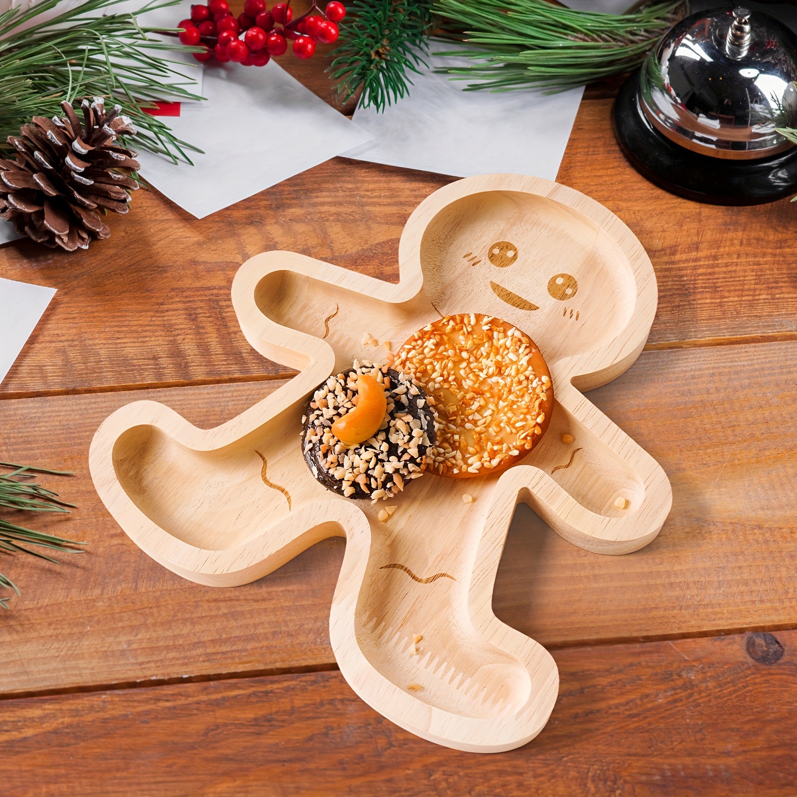 크로스보더 크리에이티브 트레이 크리스마스 원목 진저브레드맨 스낵 나무 트레이 캔디 스낵 특수 모양의 트레이 주방 트레이스토어 가기