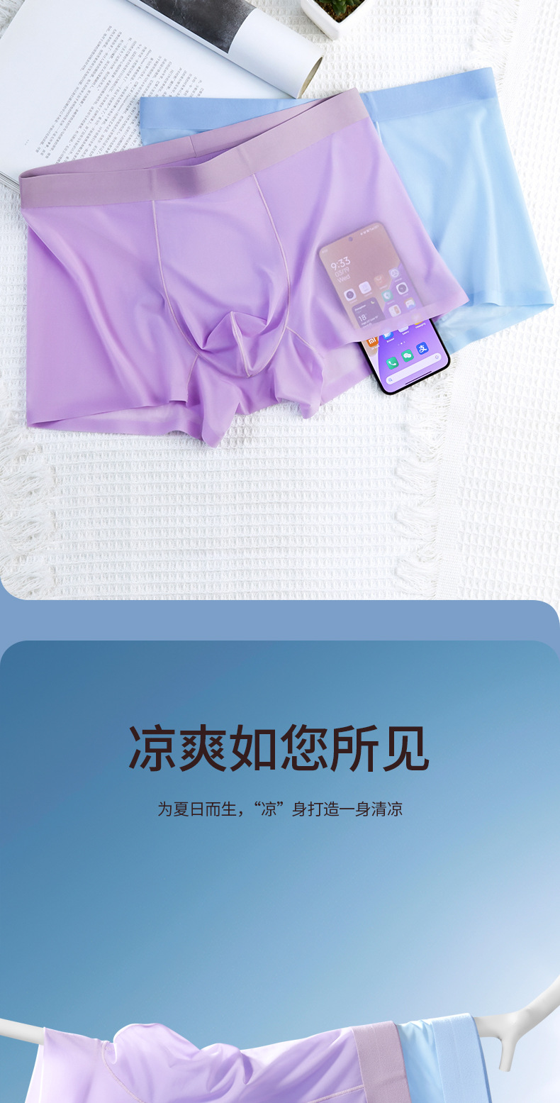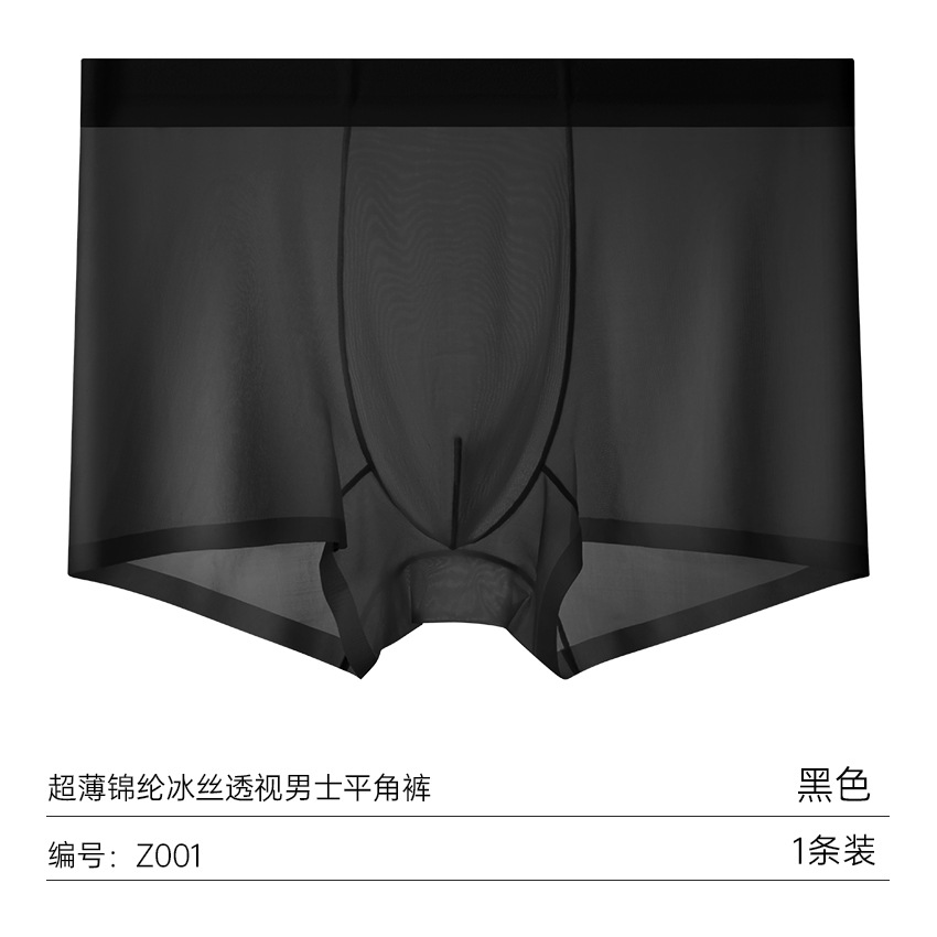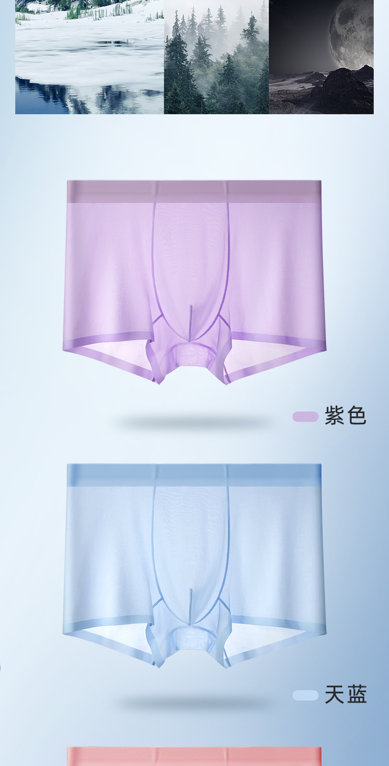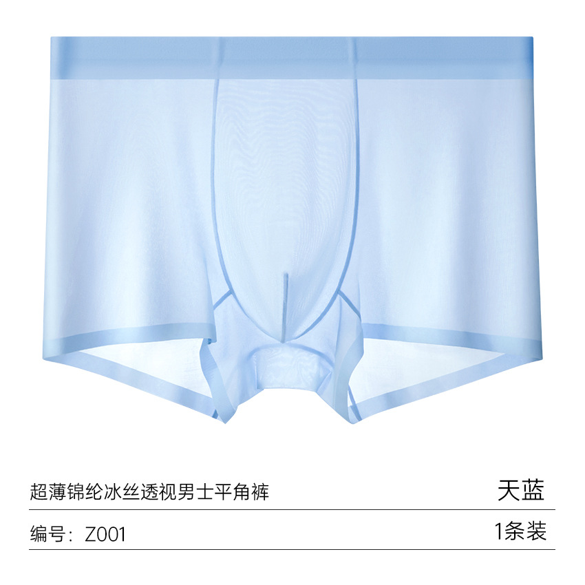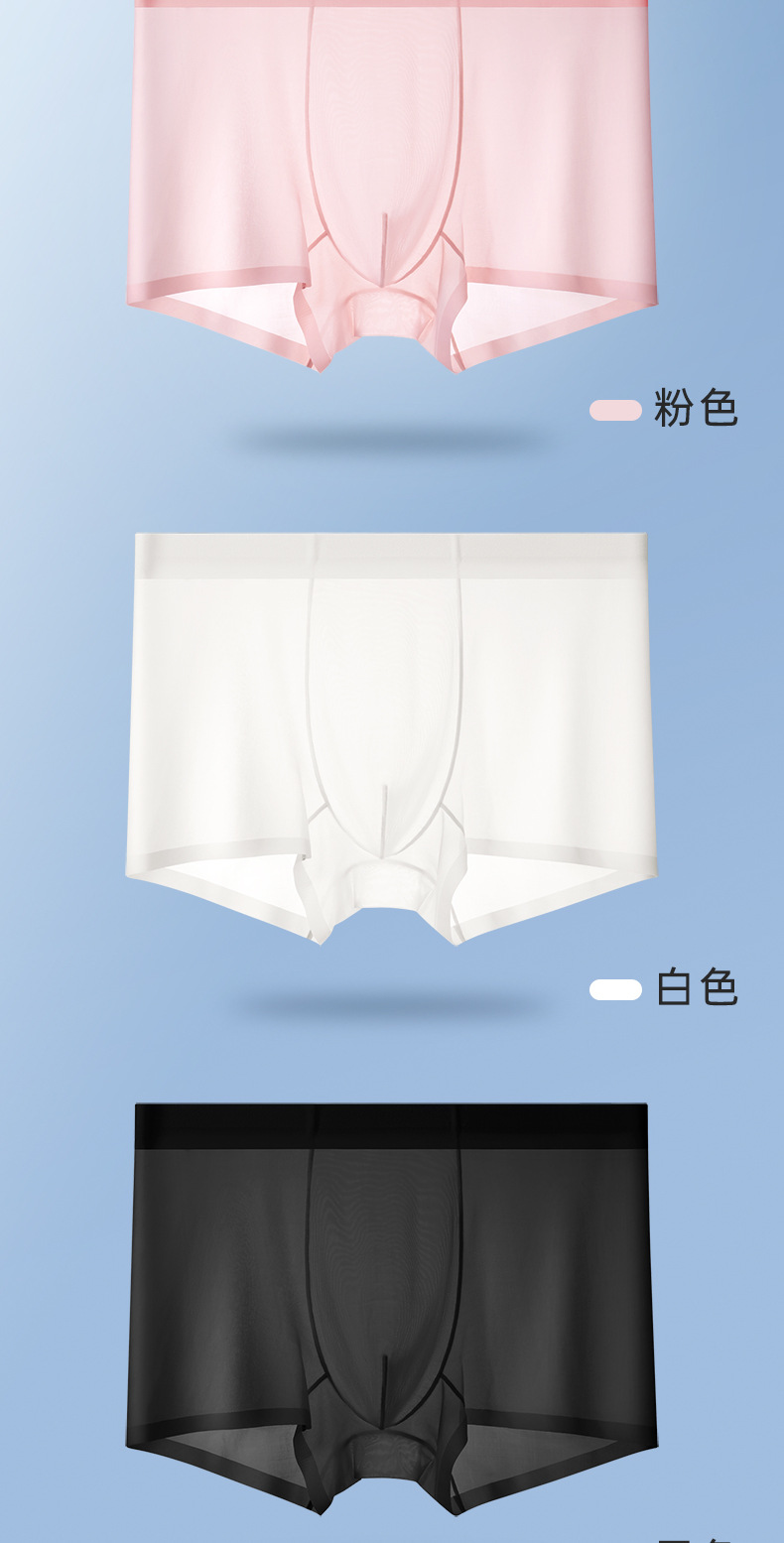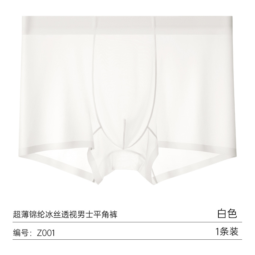 여름 얇은 완전 투명 남성용 아이스 실크 속옷, 무봉제 초박형 사각 팬티, 시원하고 통기성이 좋은 남아용 사각 팬티스토어 가기