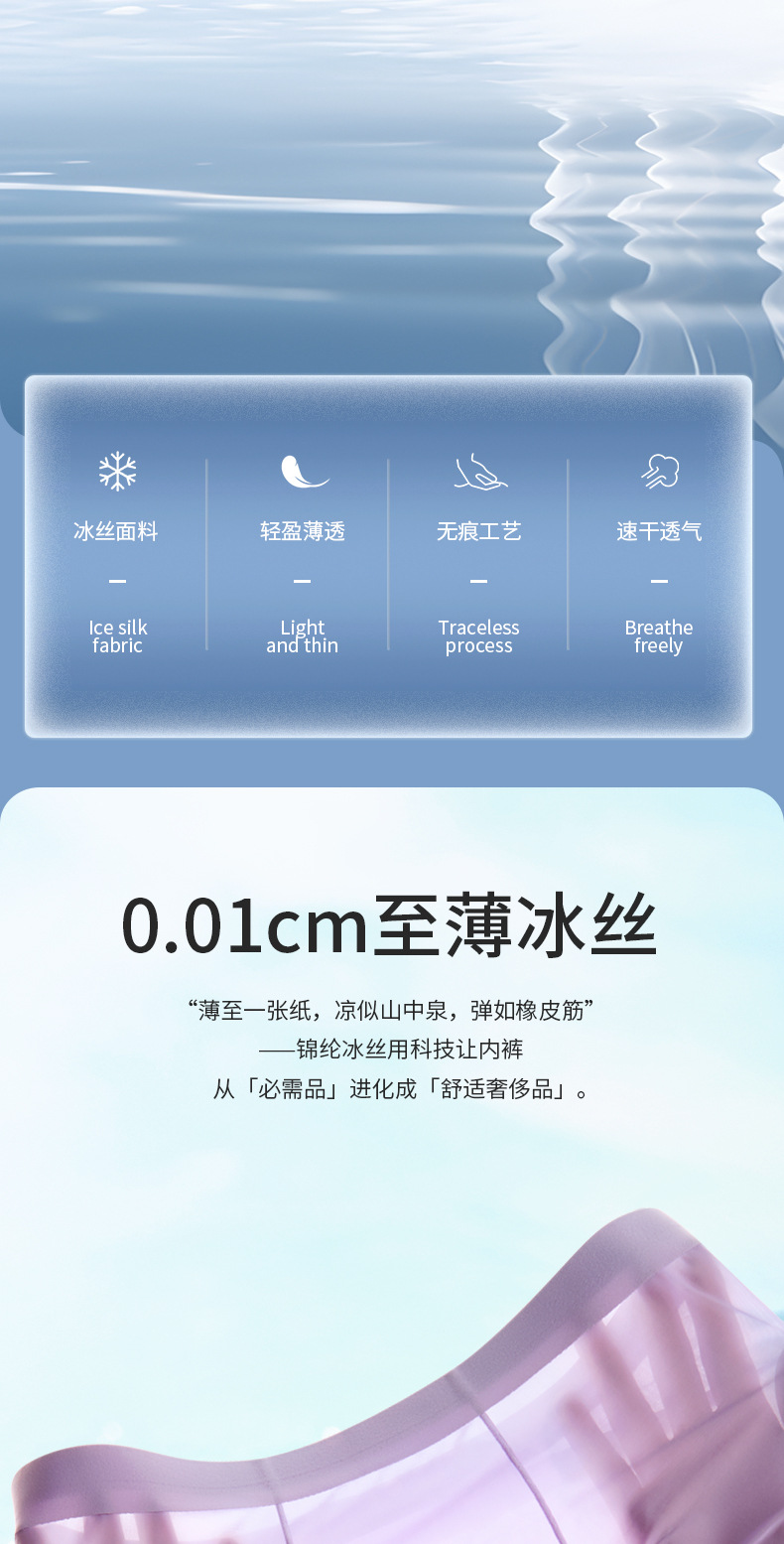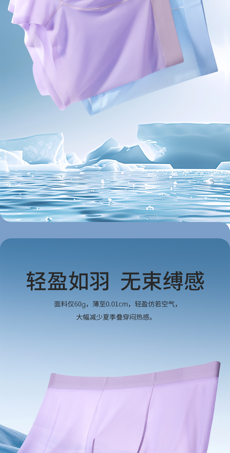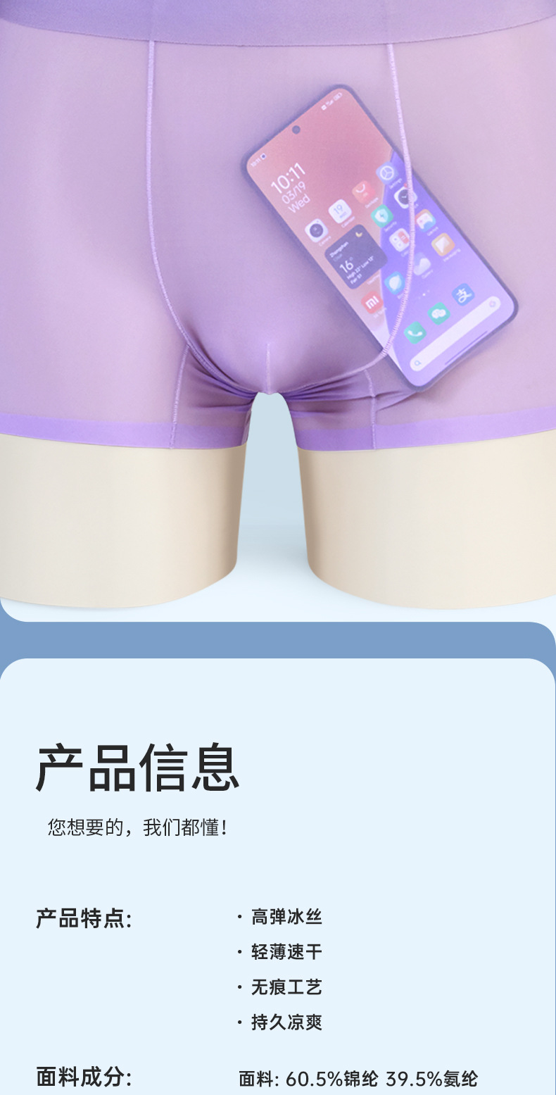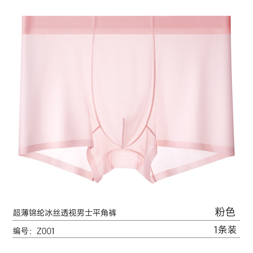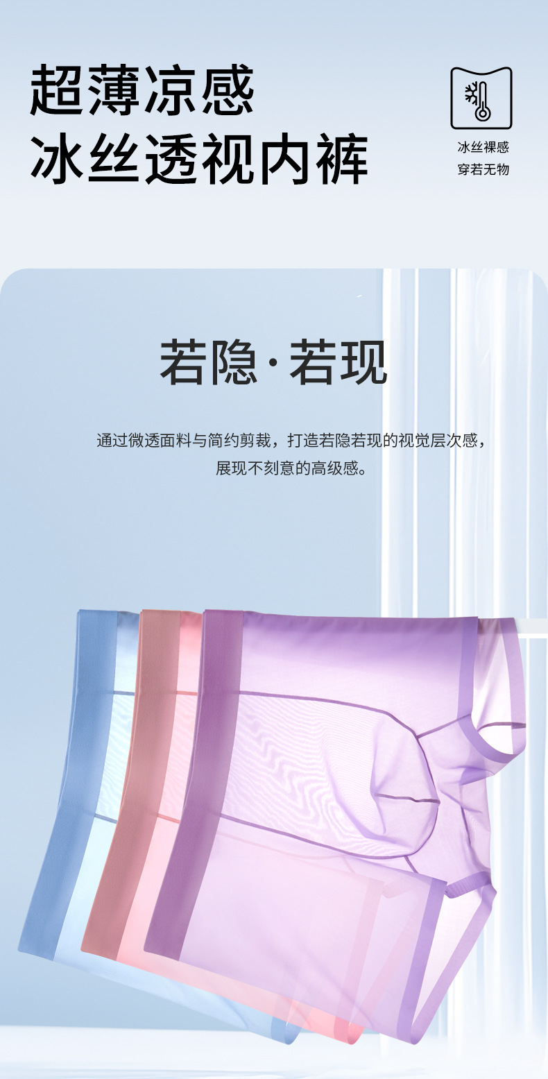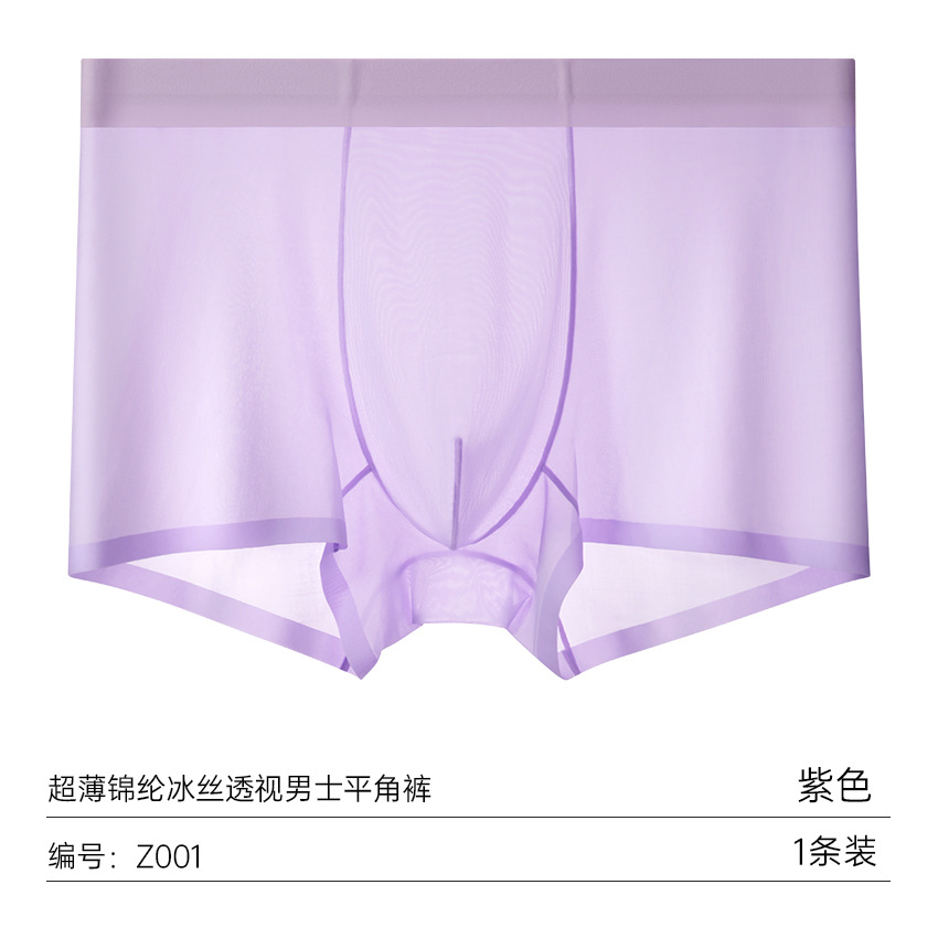 여름 얇은 완전 투명 남성용 아이스 실크 속옷, 무봉제 초박형 사각 팬티, 시원하고 통기성이 좋은 남아용 사각 팬티스토어 가기