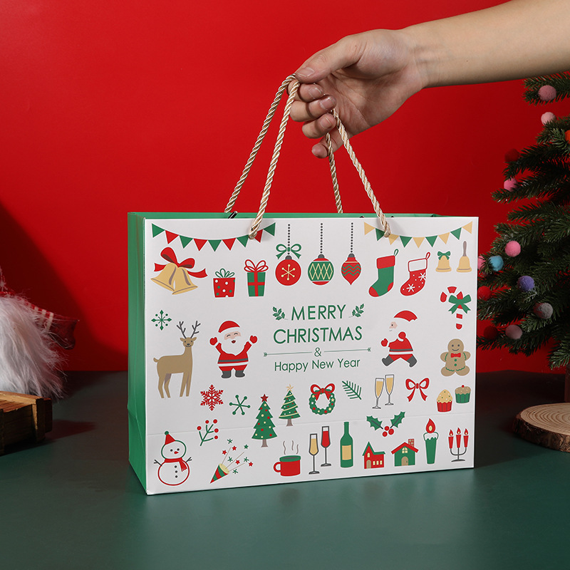 • 녹색 크리스마스 토트백, 흰색 판지, 29.5*22.5*10cm