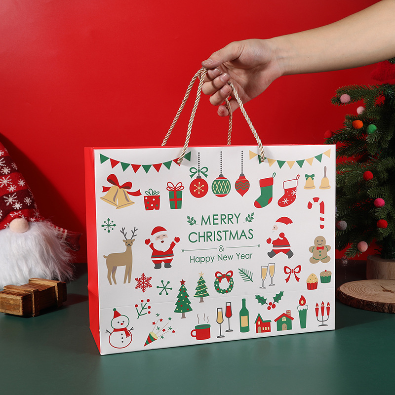 • 빨간색 크리스마스 토트백; 백색 카드보드지; 35*28.5*13cm