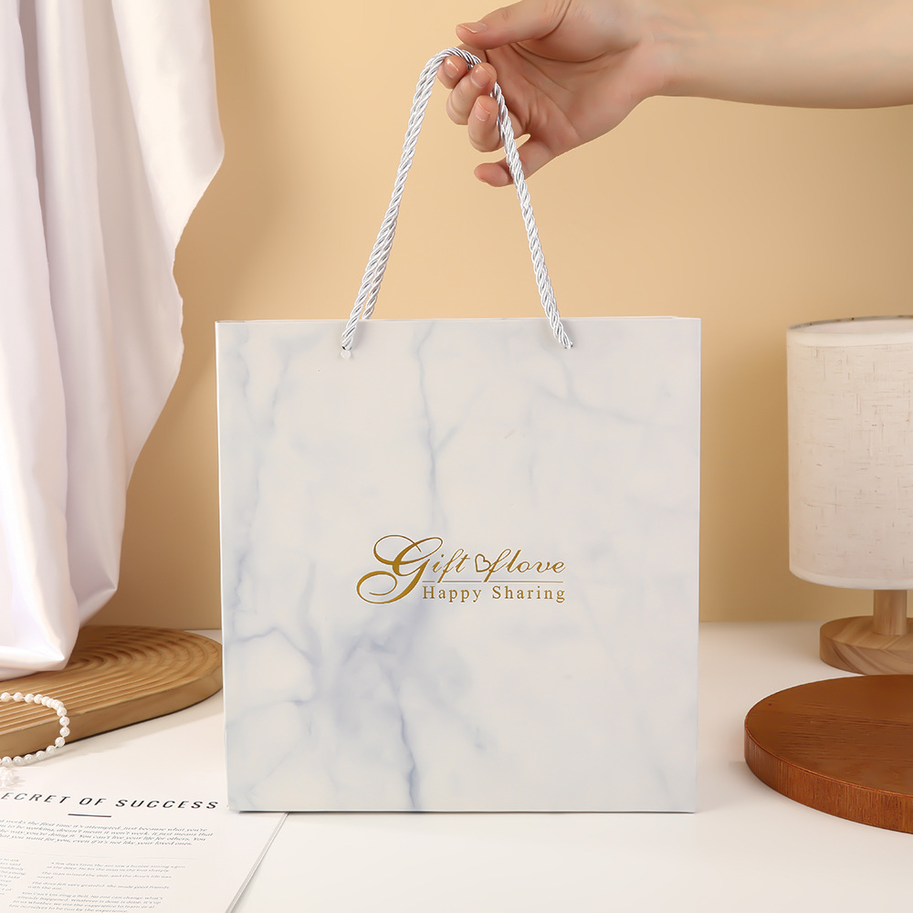 • 금색 가장자리 대리석 핸드백, 흰색 판지, 25.5*27*14cm
