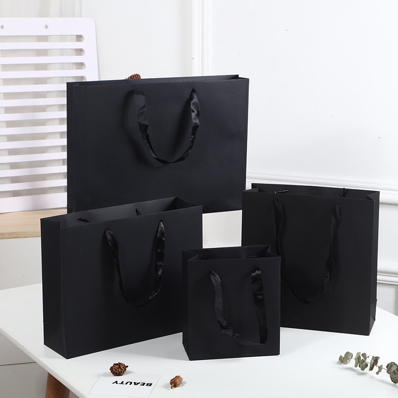 • 심플한 퓨어 블랙 핸드백, 흰색 판지, 16.5*18*9cm