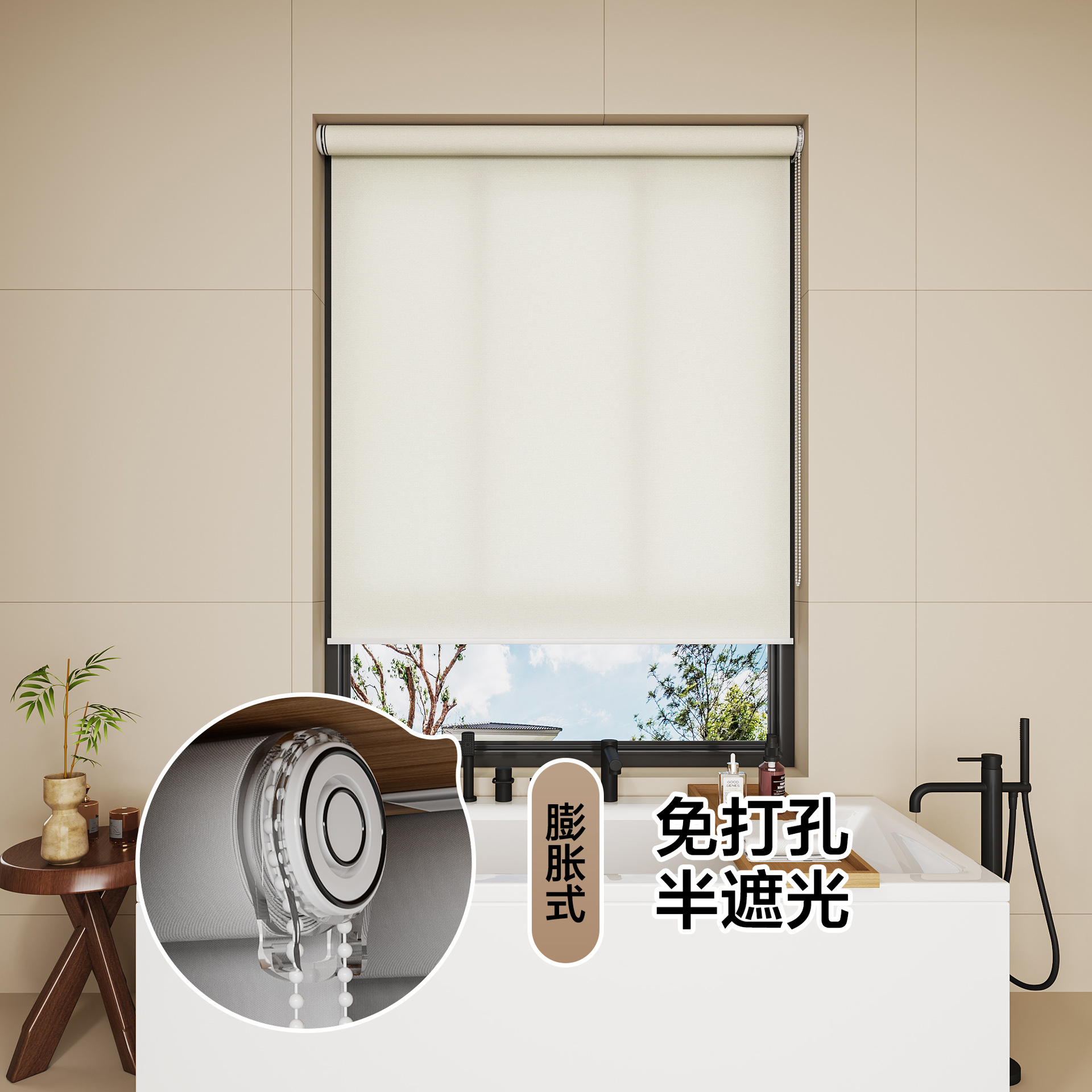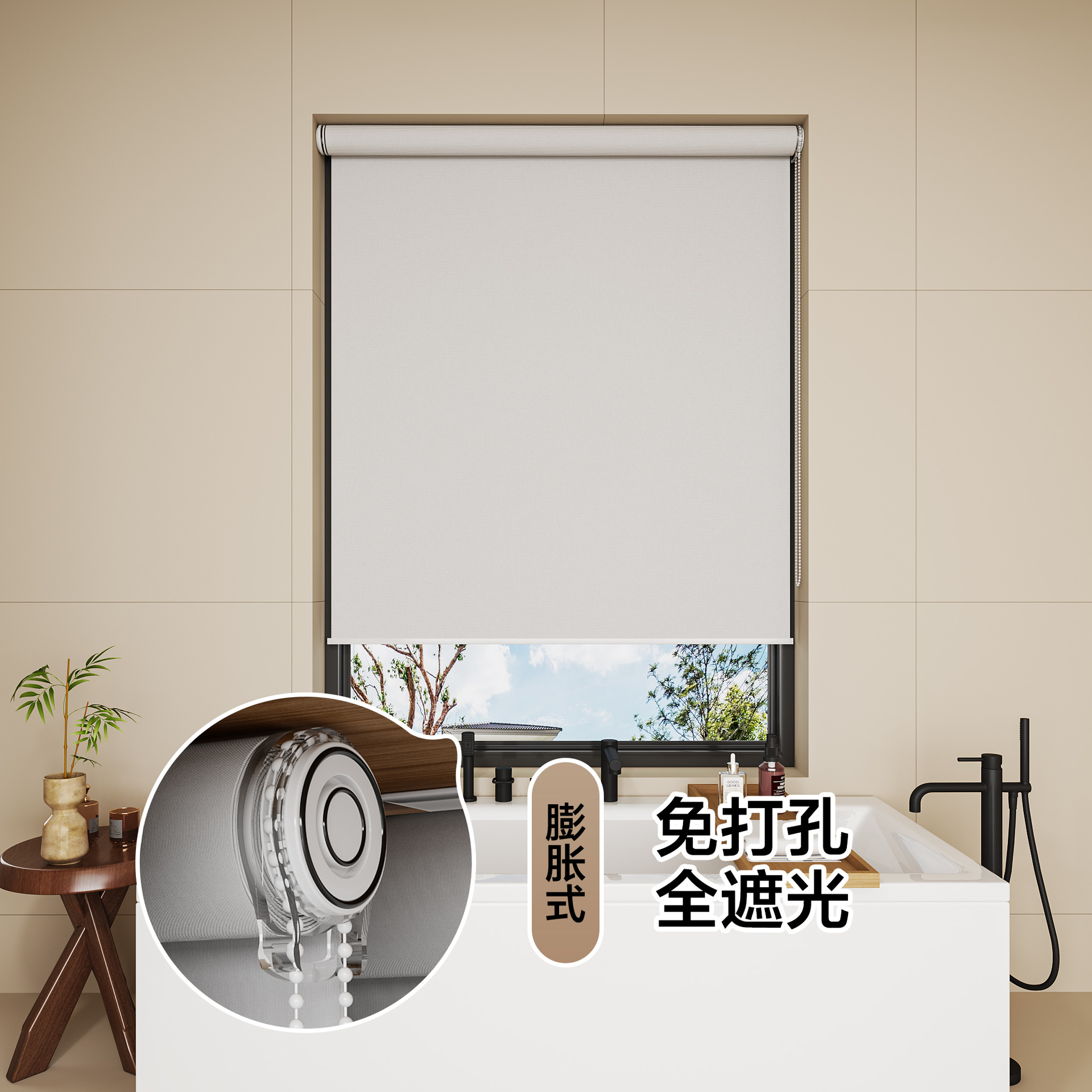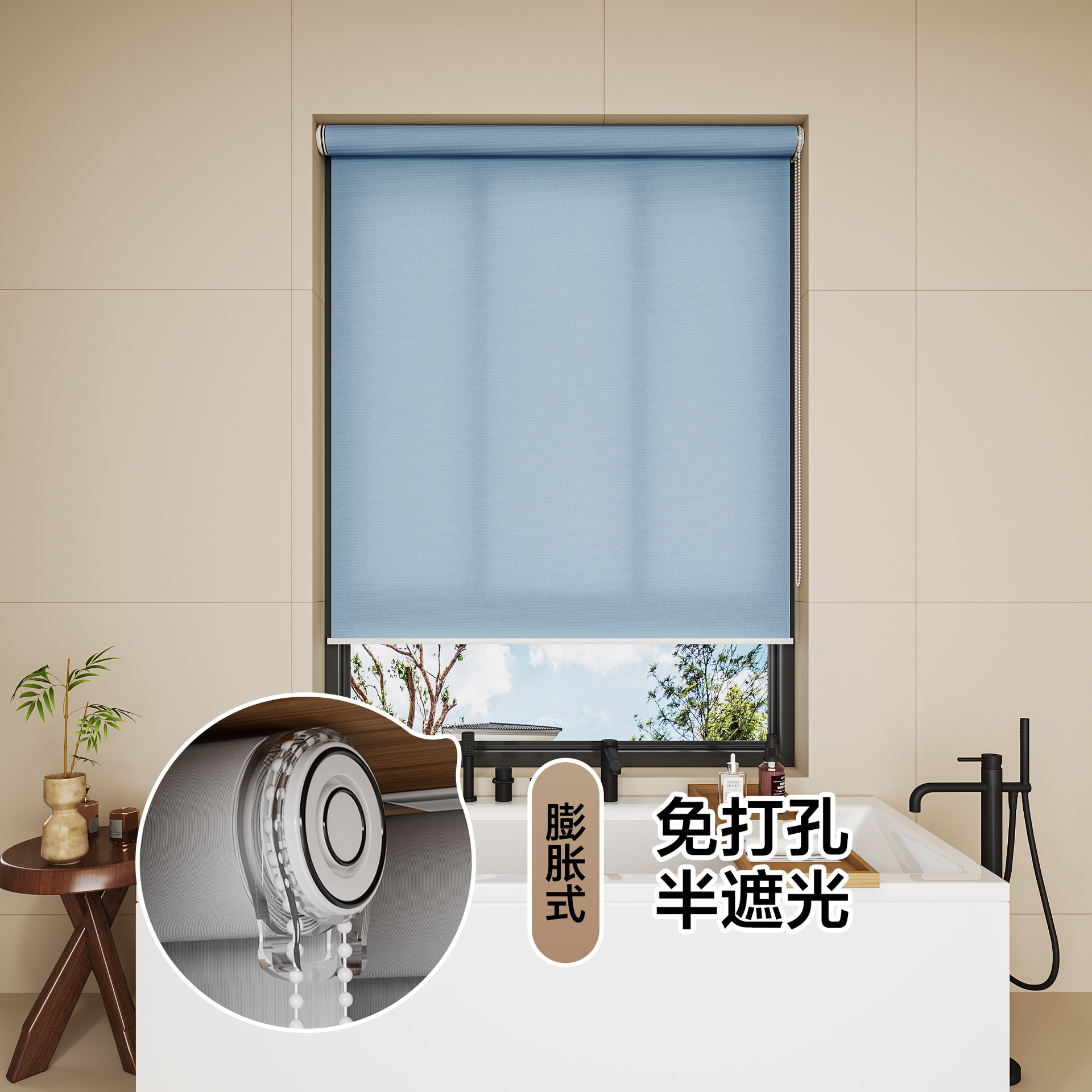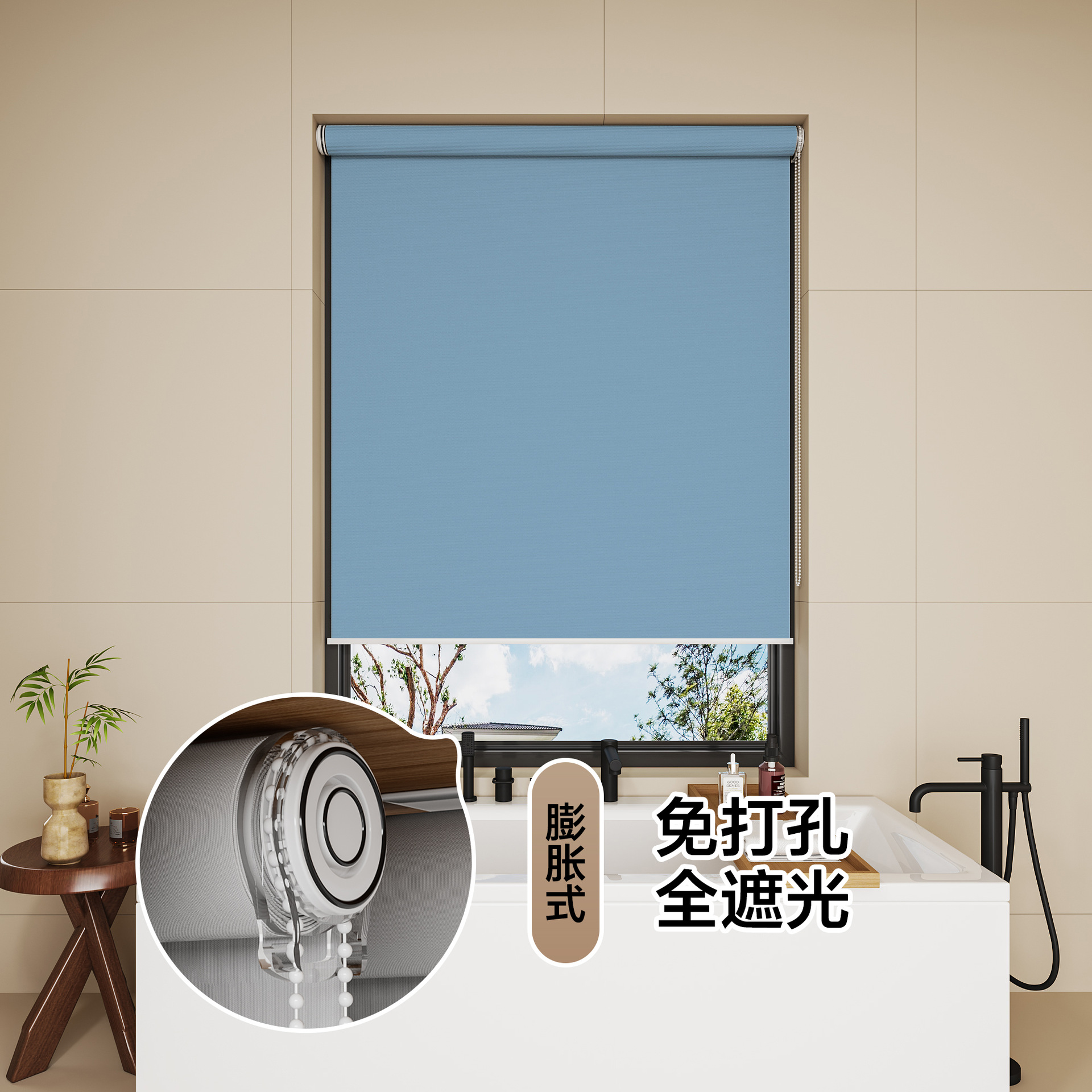 롤러 블라인드 차광 방수 단열 루버 욕실 창 펀치 프리 설치 사무실 차양
