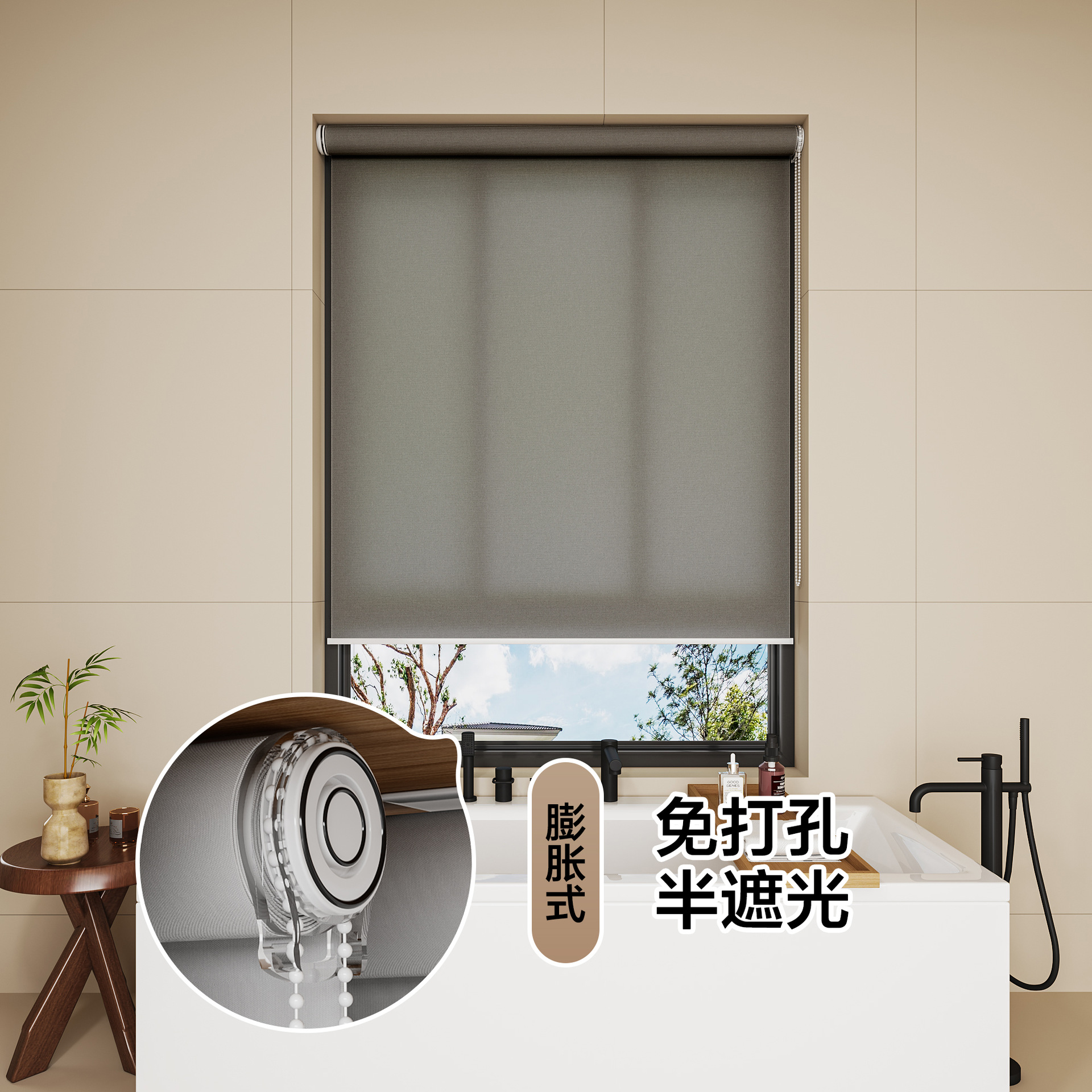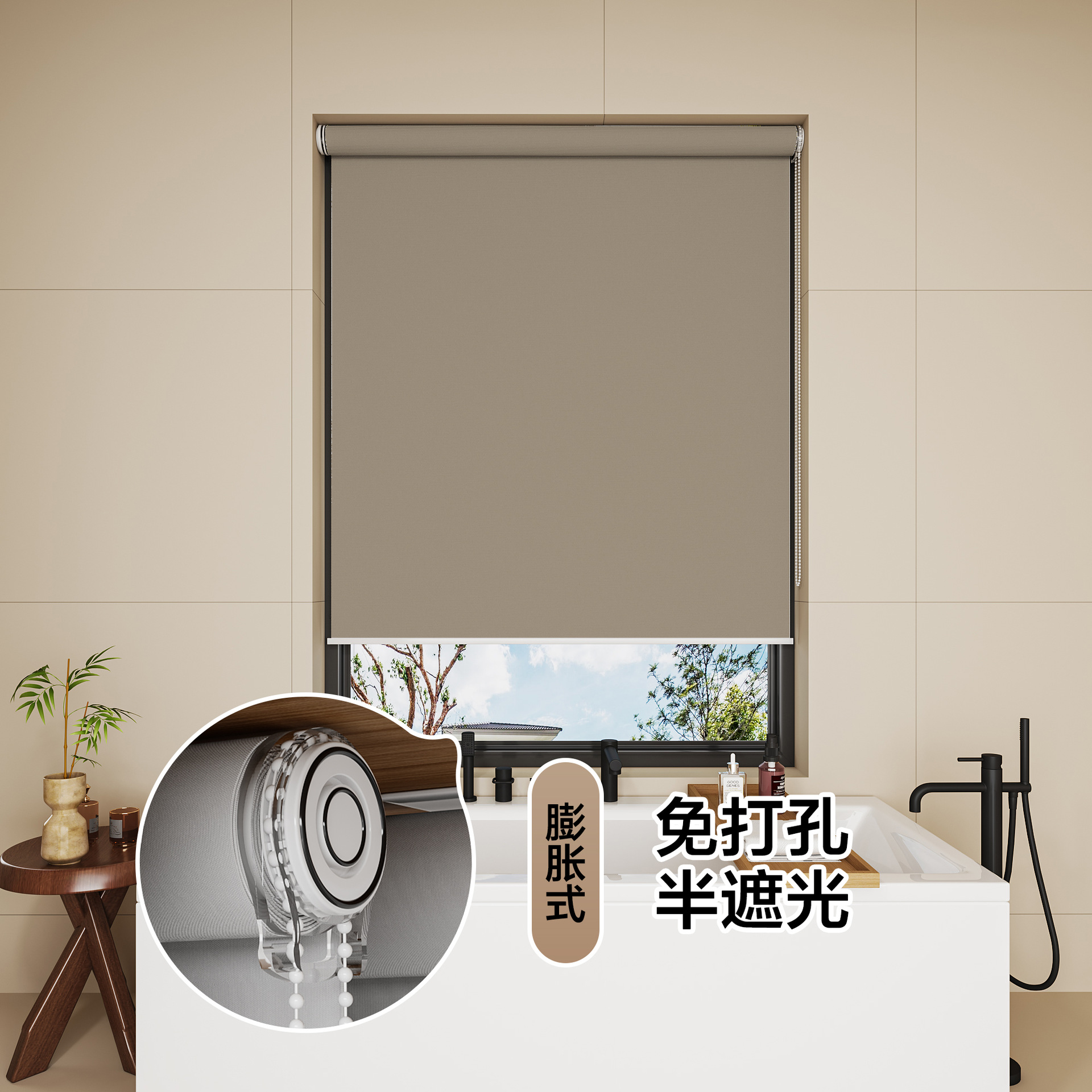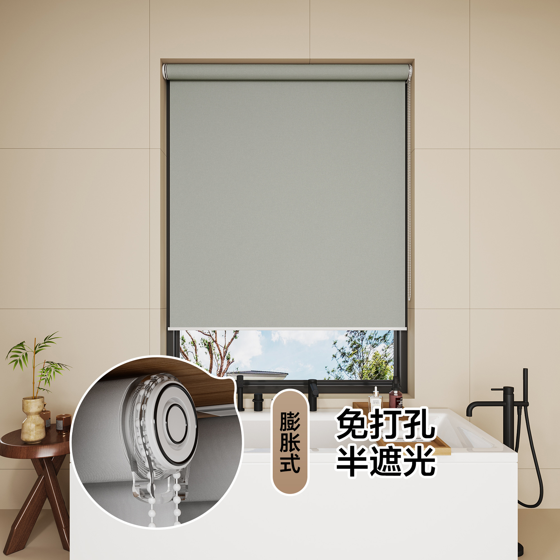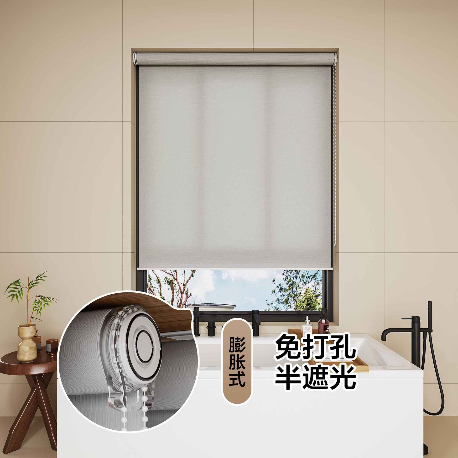 롤러 블라인드 차광 방수 단열 루버 욕실 창 펀치 프리 설치 사무실 차양