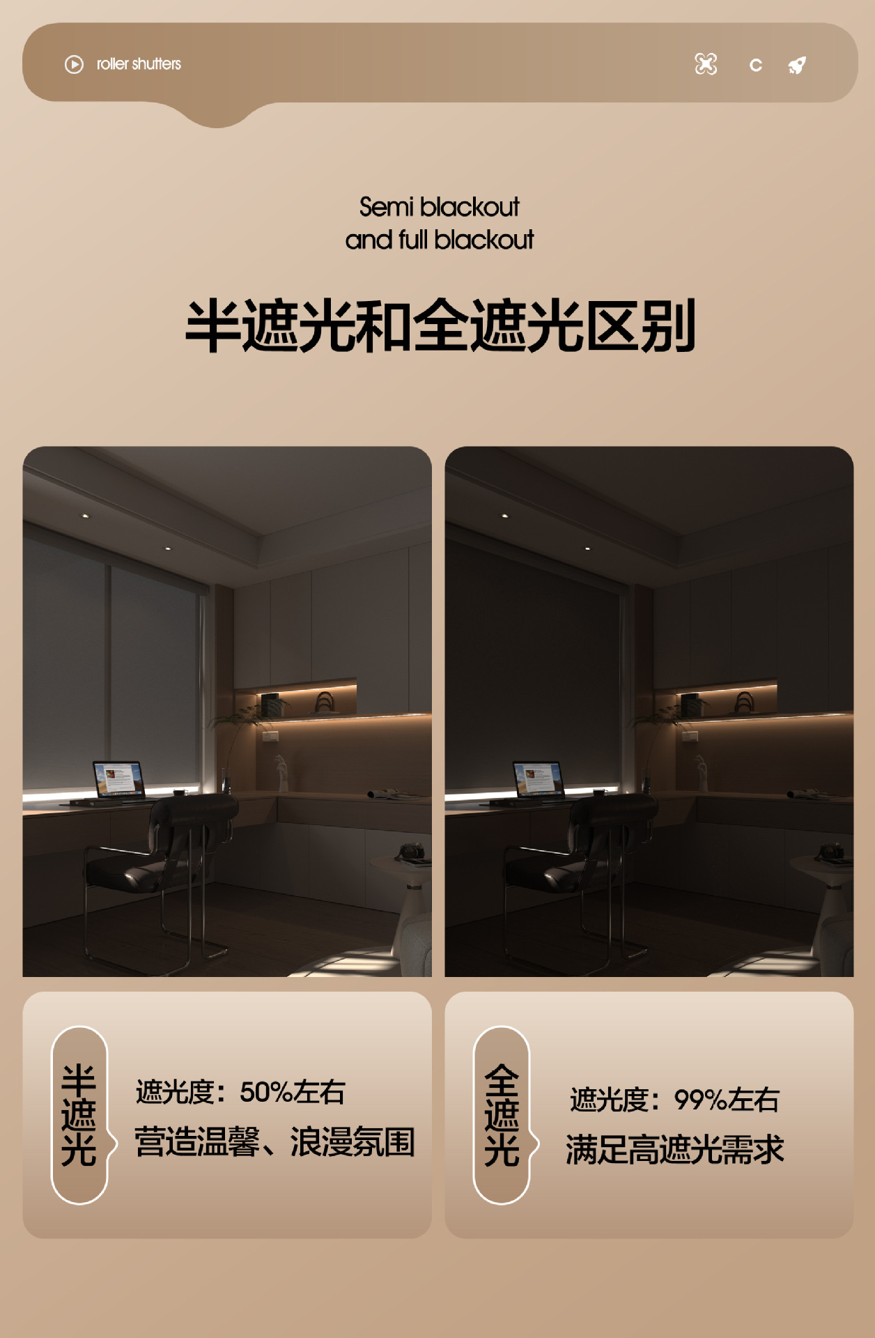 • 펀칭 없음, 완전 암막 - 밀크 커피