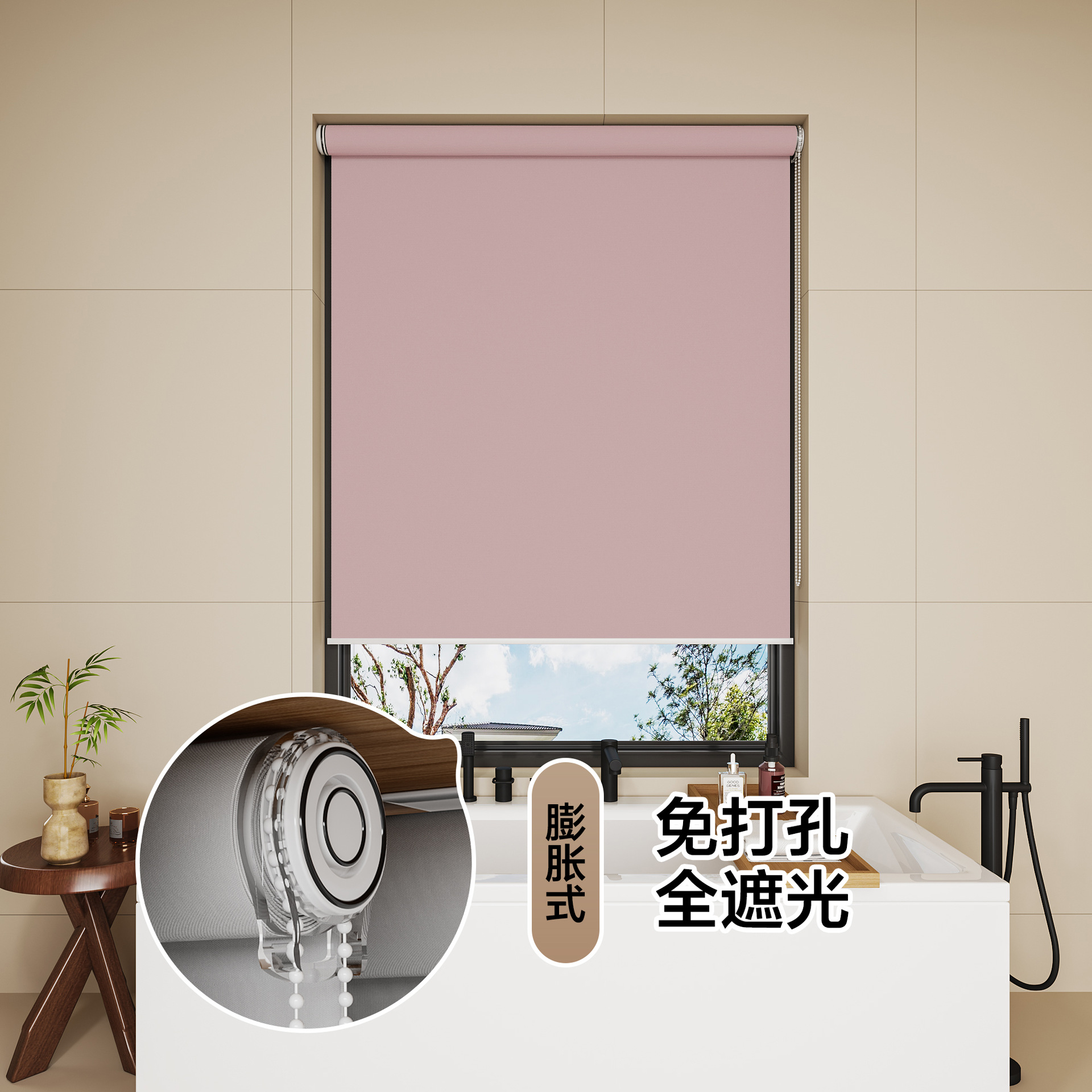 • 펀칭 없음, 완전 암막 - 핑크