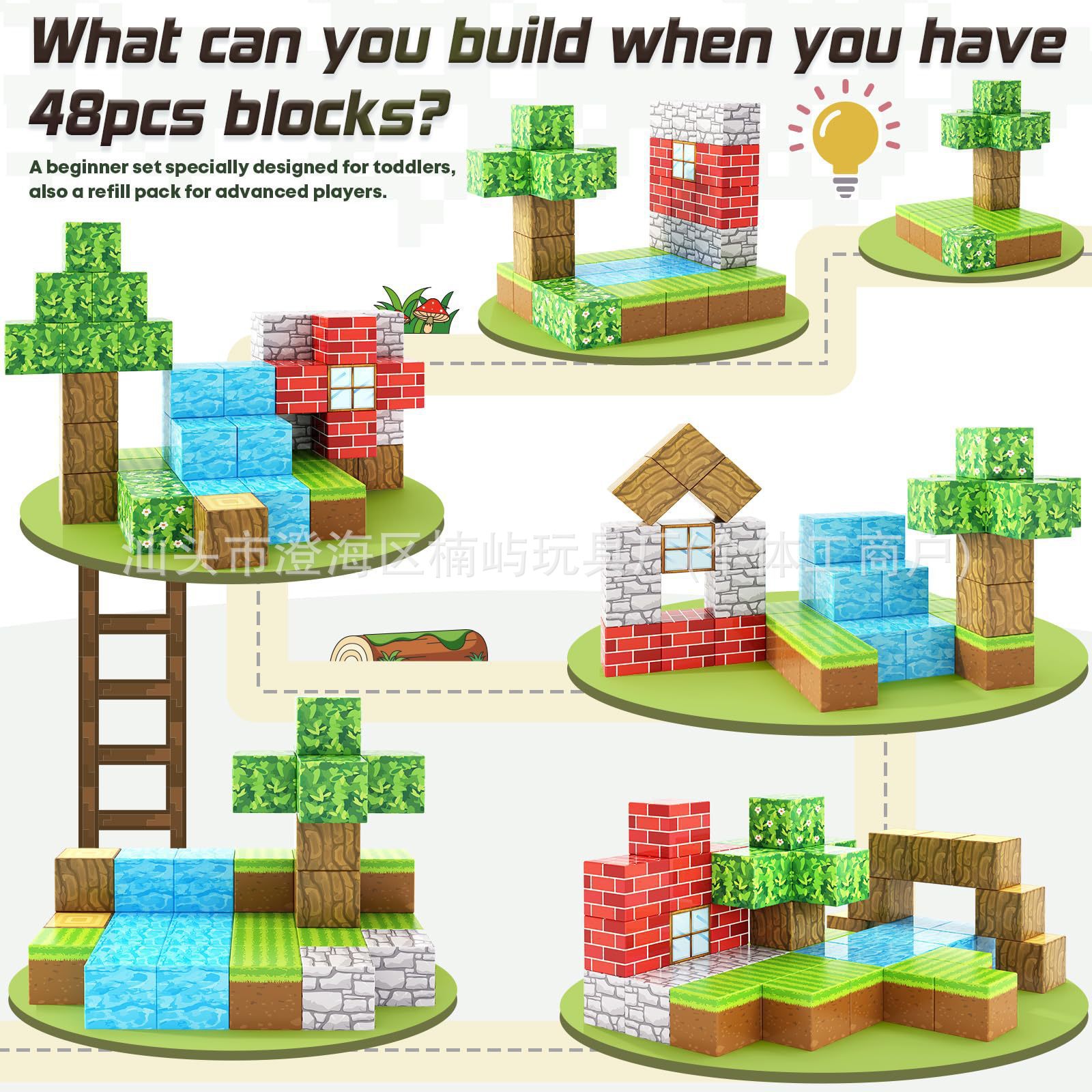My Magnetic World Square 마그네틱 빌딩 블록은 3 차원 조립 STEM 감각 어린이 교육 완구 선물을 만듭니다.