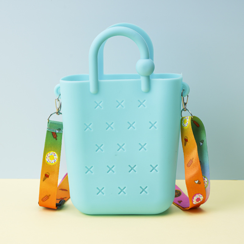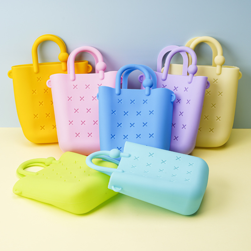 단색 실리콘 동전 지갑, 해변 가방, 어린이 크로스 바디 백, 신발 꽃, 탈착식 DIY 신발 버클 도매스토어 가기