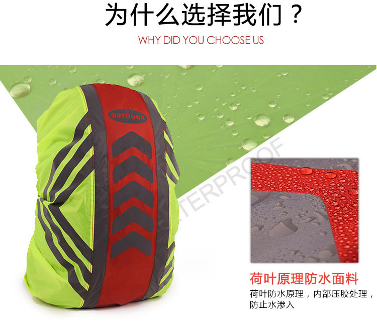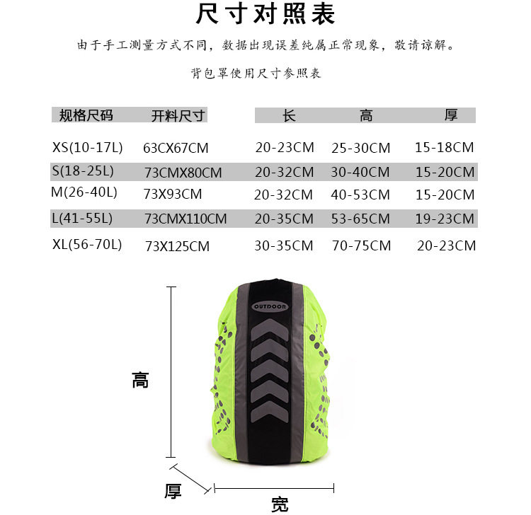 • 형광 녹색 - 반사 수직 스타일 - XL 사이즈(60-70리터에 적합)