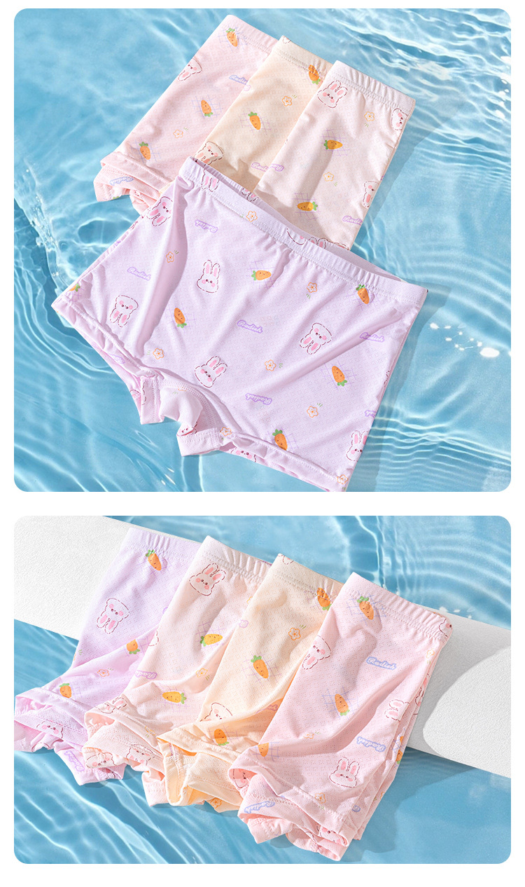 아이스 실크 어린이 속옷 소녀 복서 팬티 여름 얇은 클래스 A 통기성 메쉬 큰 어린이 소녀 아기 속옷
