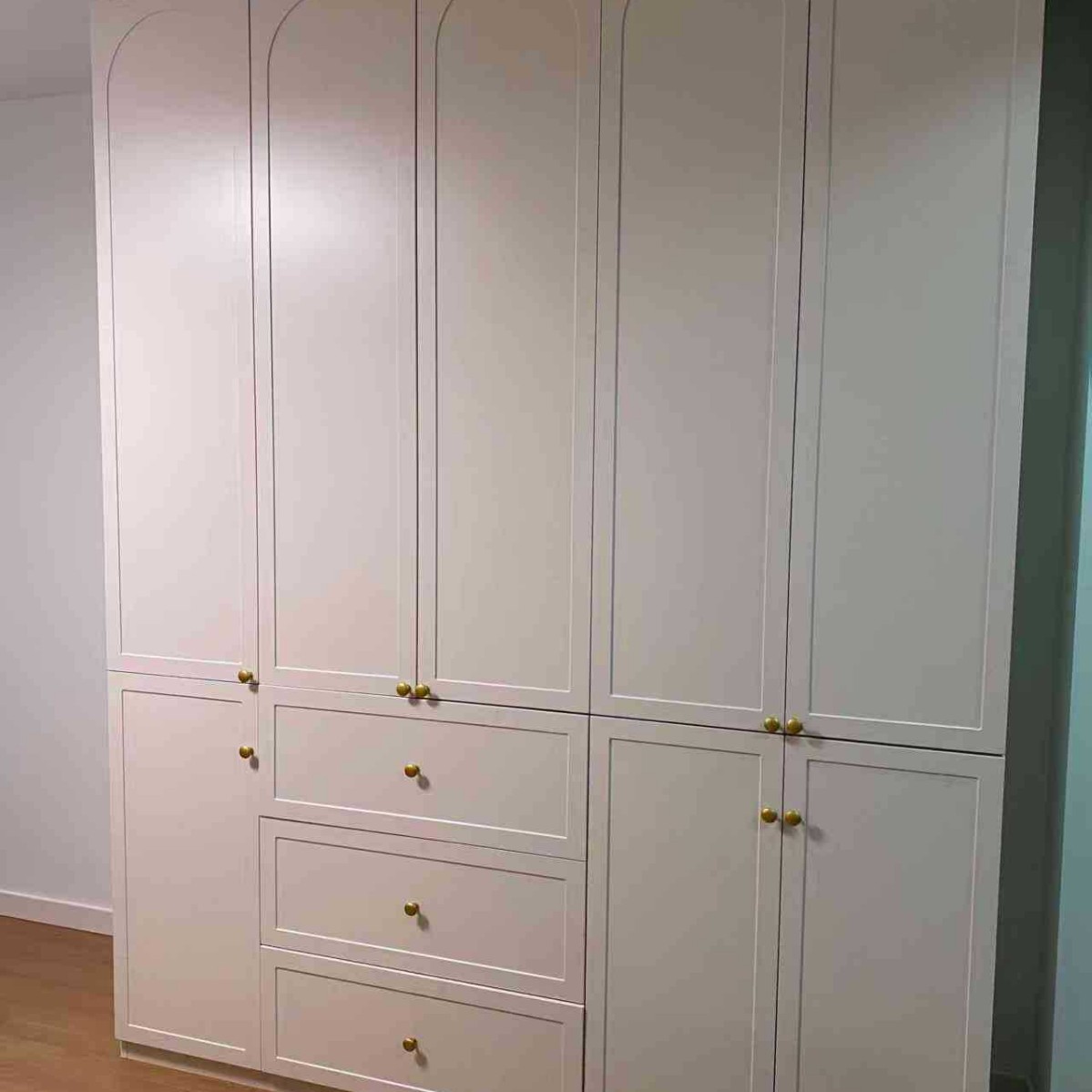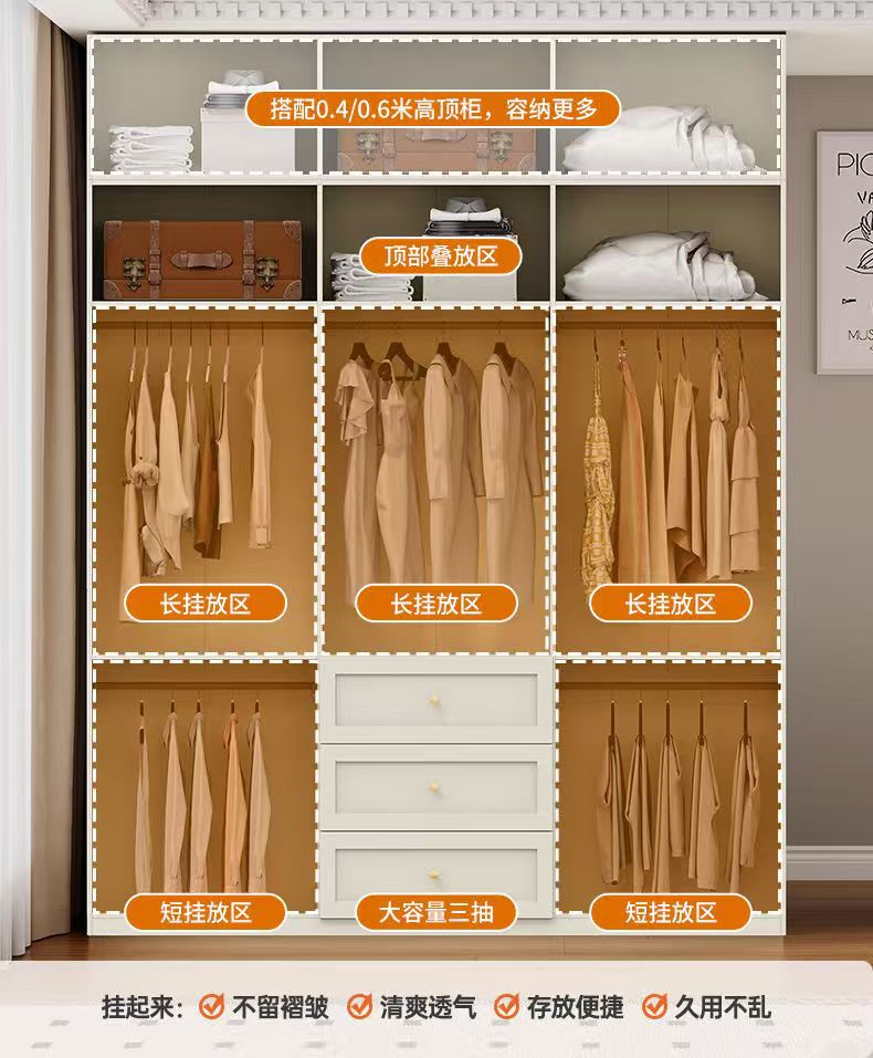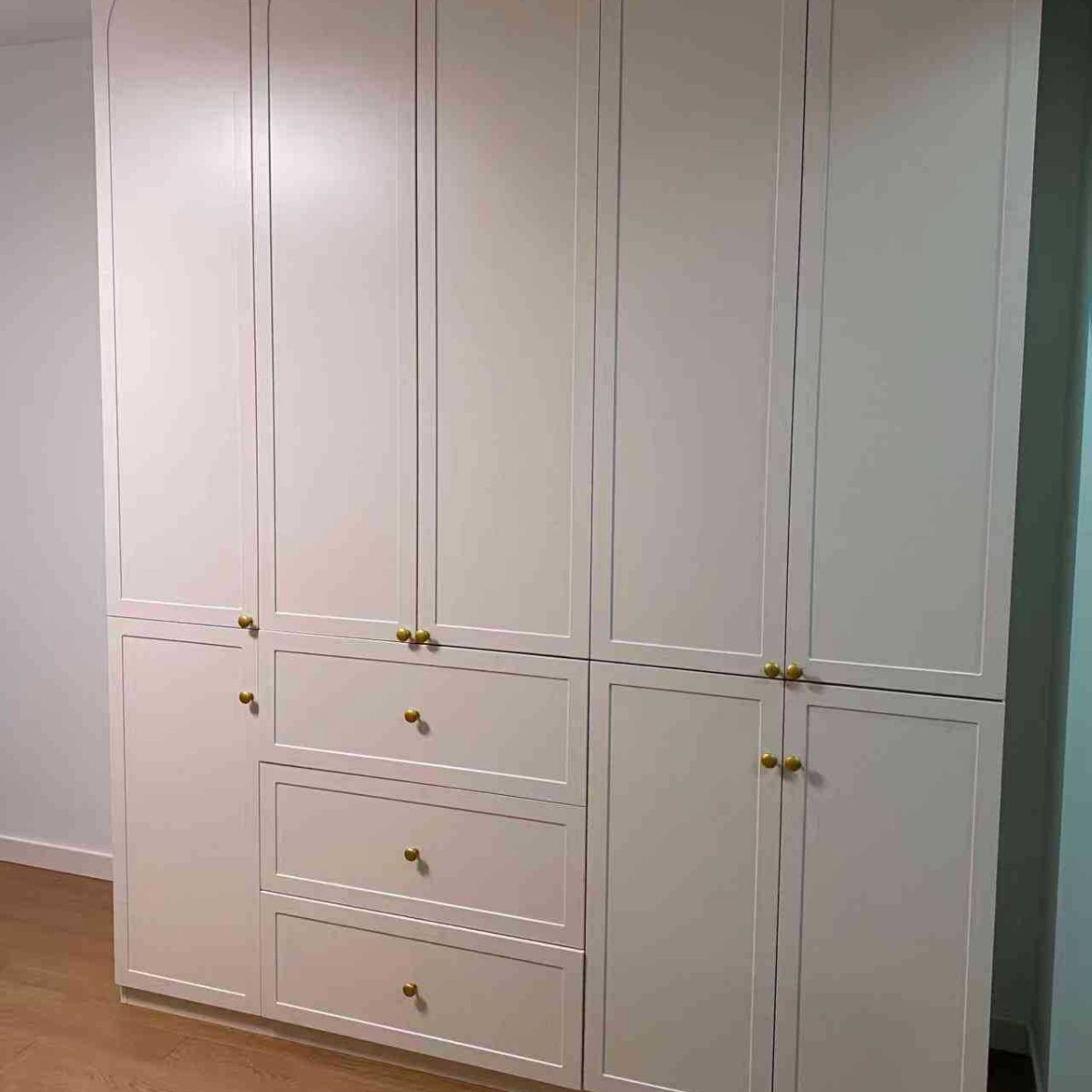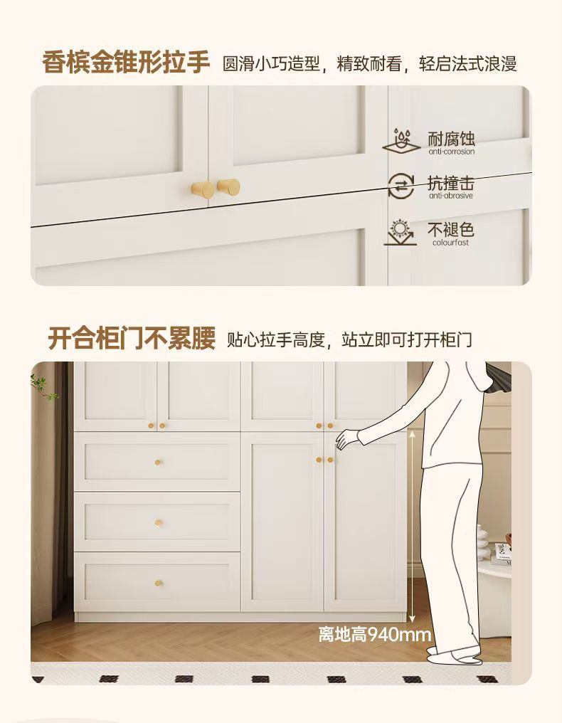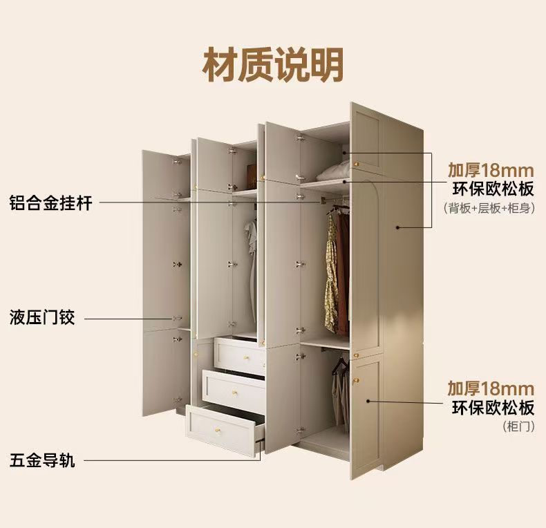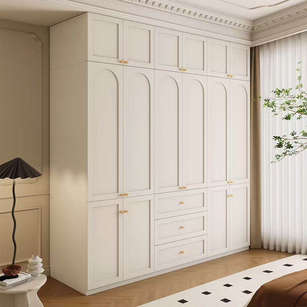 프렌치 스타일 옷장 홈 침실 분할 유럽 소나무 판자 현대적인 단순 인기 페인트가 없는 따뜻한 흰색 대형 옷장 옷장