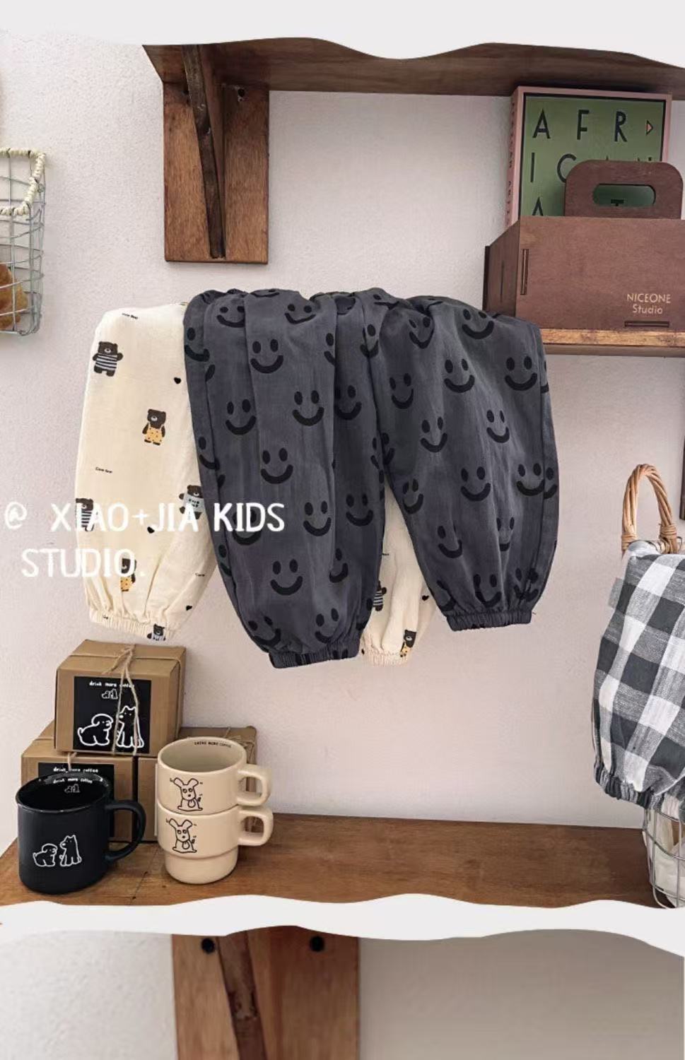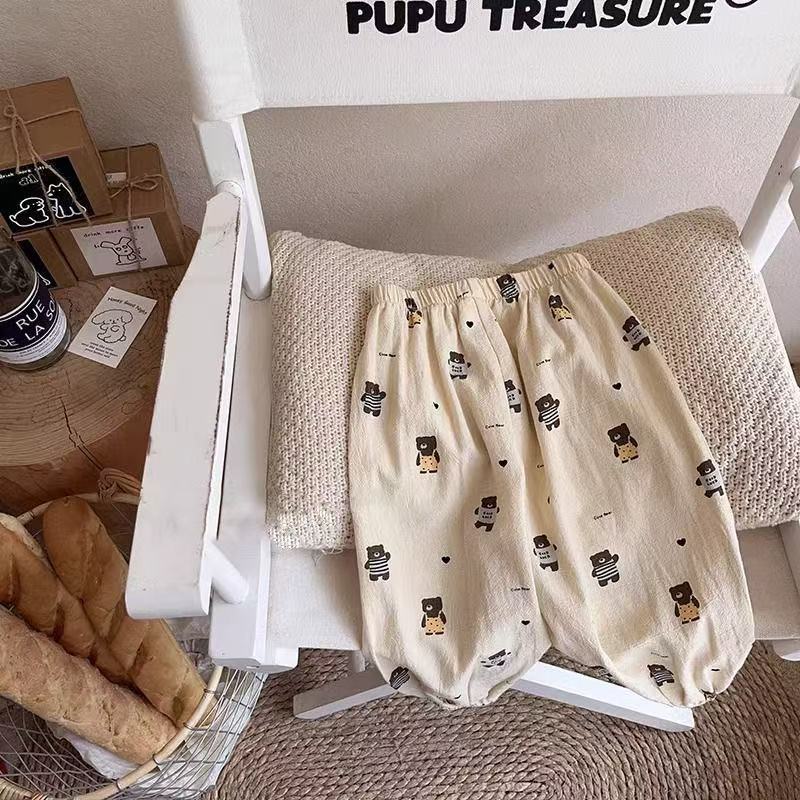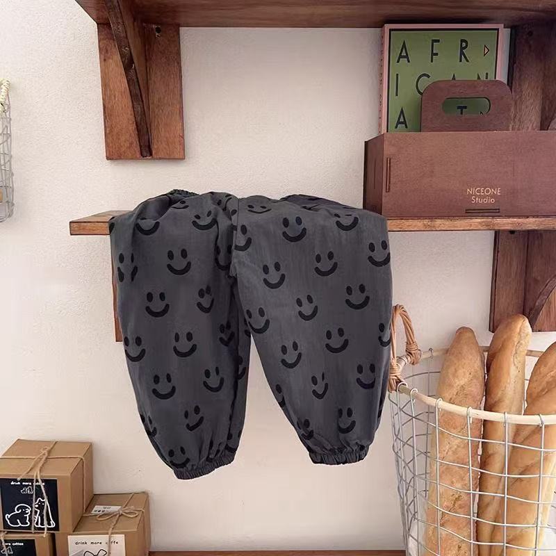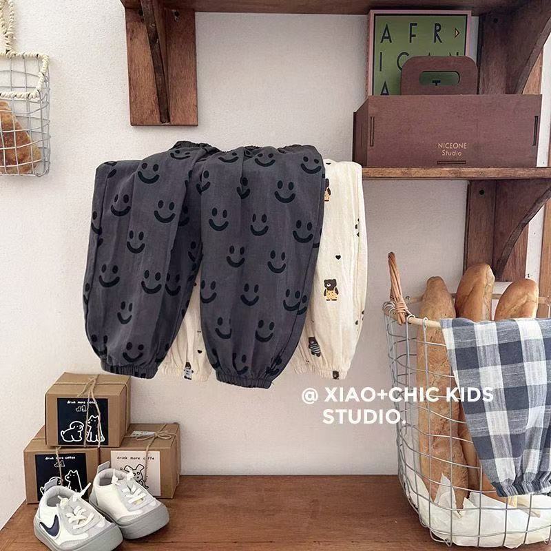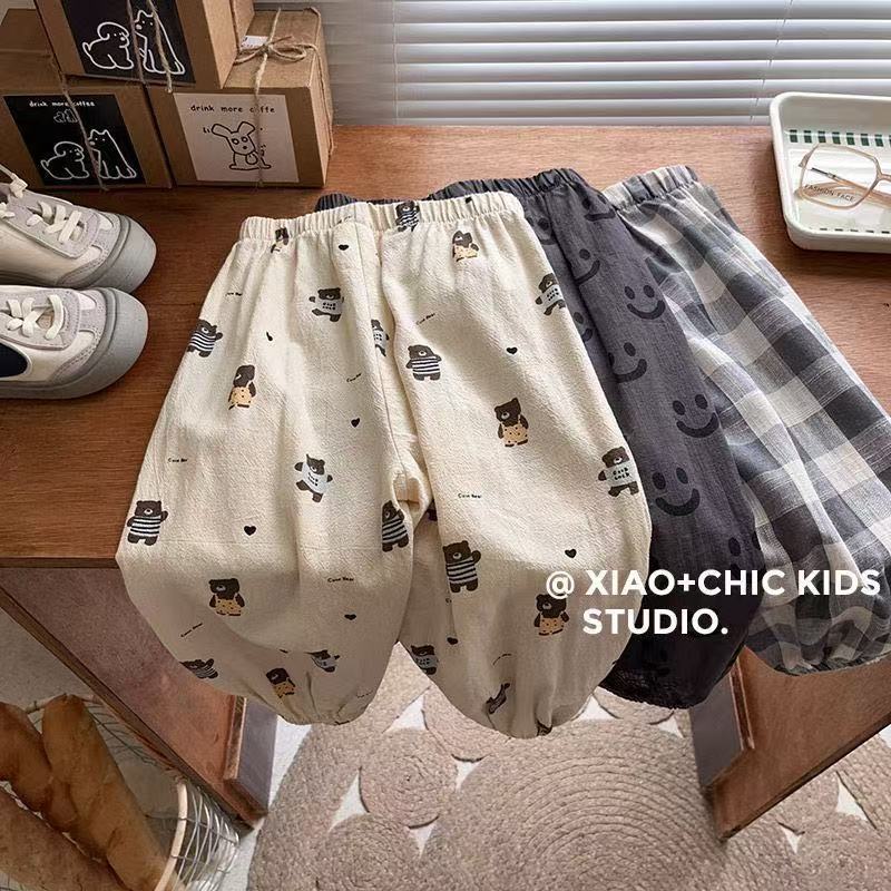 어린이 여름 모기 방지 바지 2025 소년과 소녀를위한 귀여운 전체 인쇄 만화 얇은 통기성 캐주얼 느슨한 다용도 바지