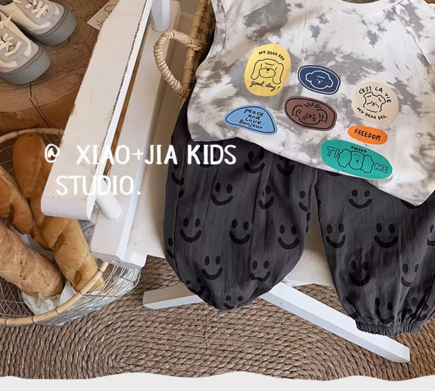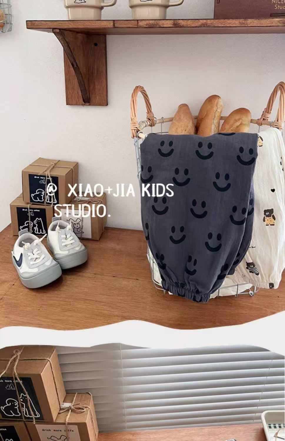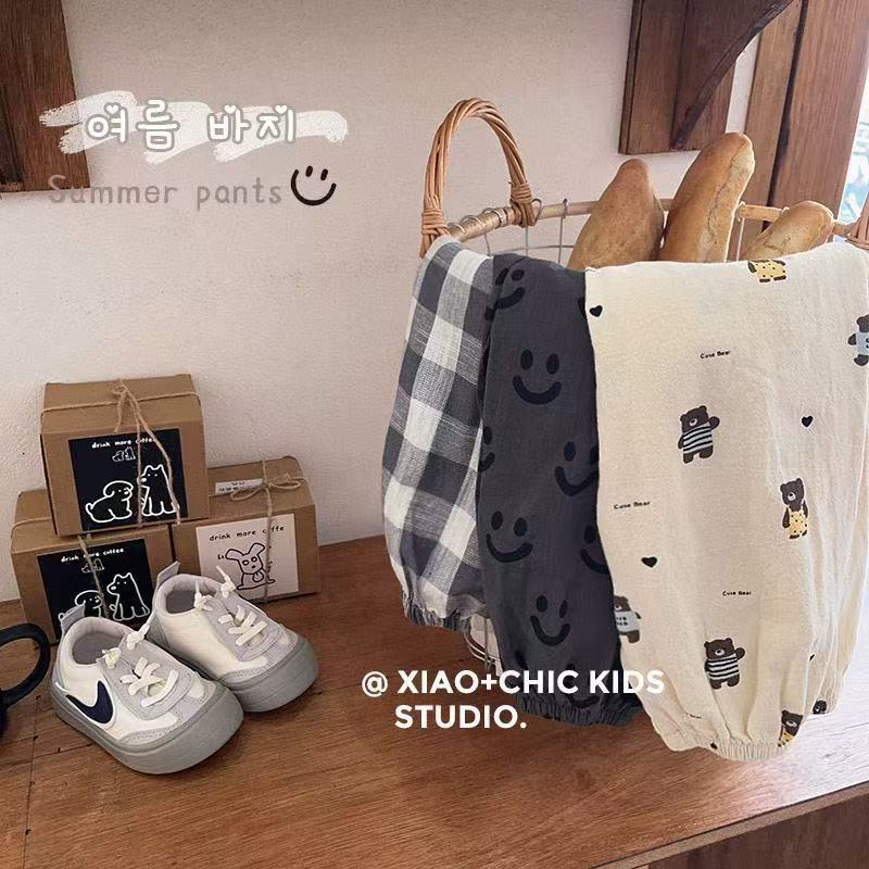 어린이 여름 모기 방지 바지 2025 소년과 소녀를위한 귀여운 전체 인쇄 만화 얇은 통기성 캐주얼 느슨한 다용도 바지