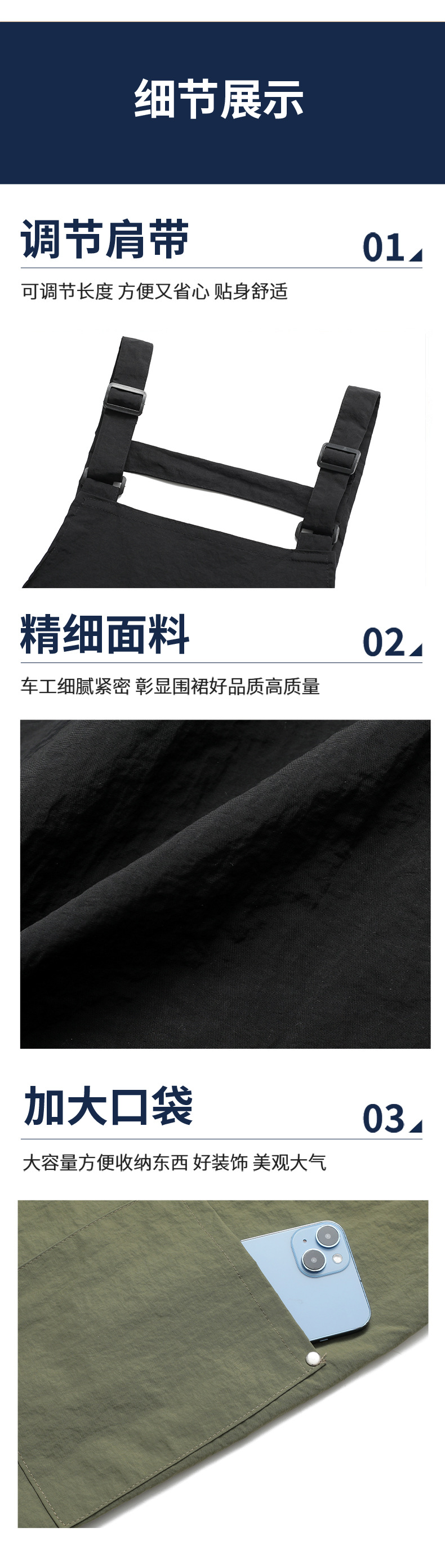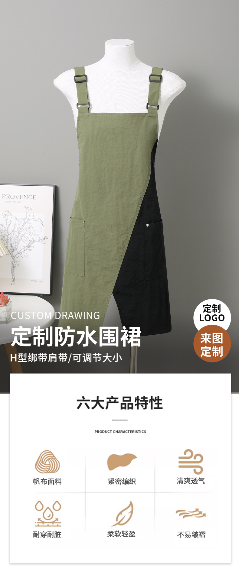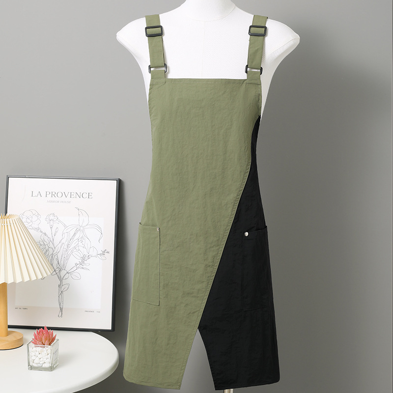 • 컬러블록 조절 가능한 어깨끈 속건성 방수 앞치마 - 밀리터리 그린