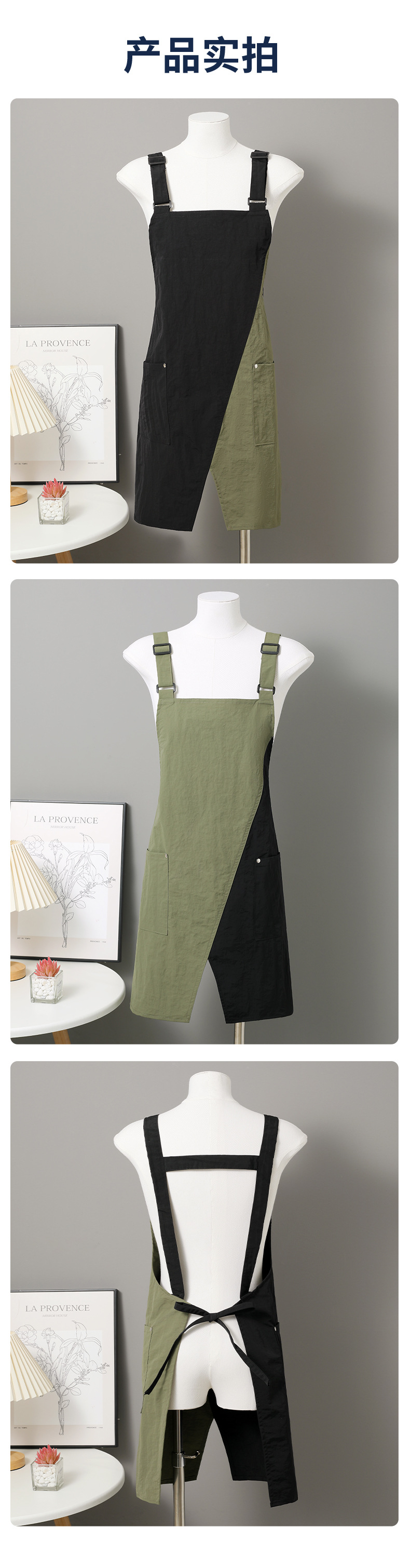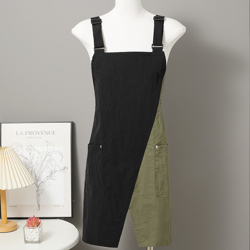 • 컬러블록 조절 가능한 어깨끈 속건성 방수 앞치마 - 블랙