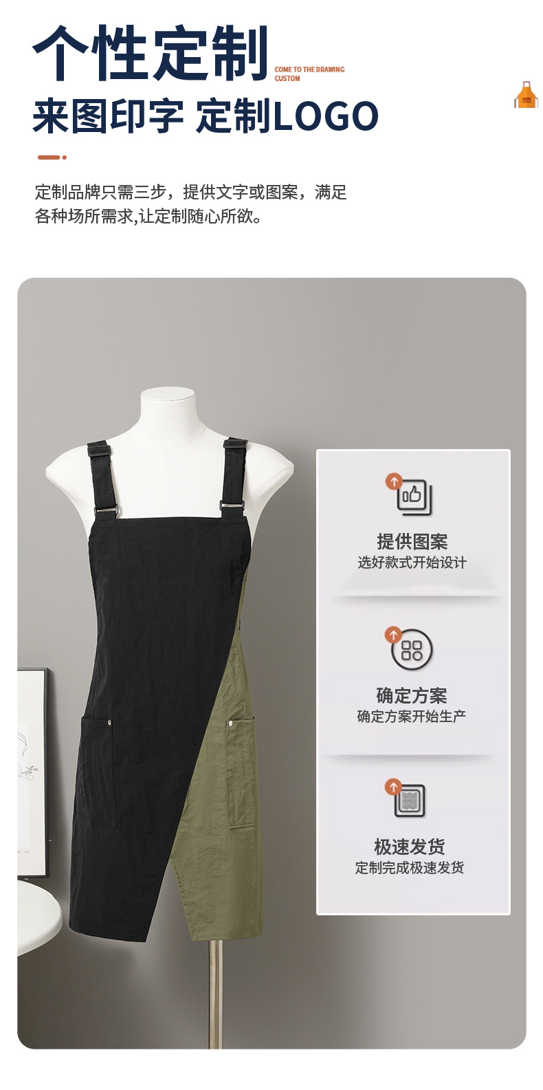 가정용 성인 주방 요리 작업복 앞치마, 조절 가능한 어깨끈, 컬러 매칭, 속건성, 방수 및 방유 앞치마, 로고 인쇄 가능스토어 가기