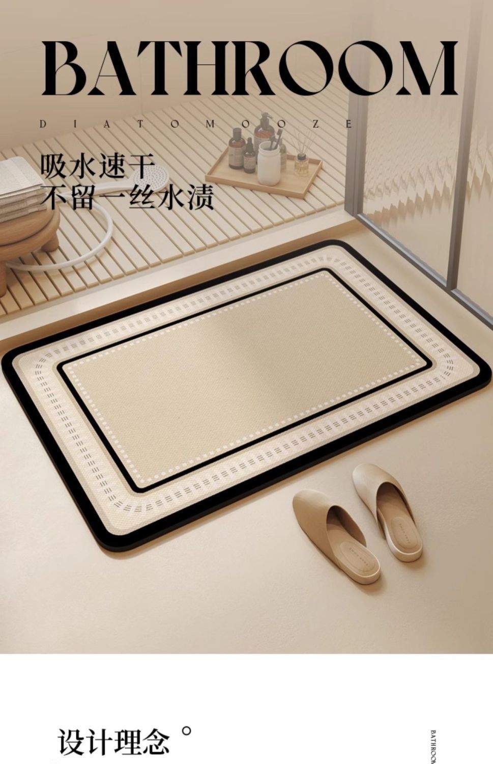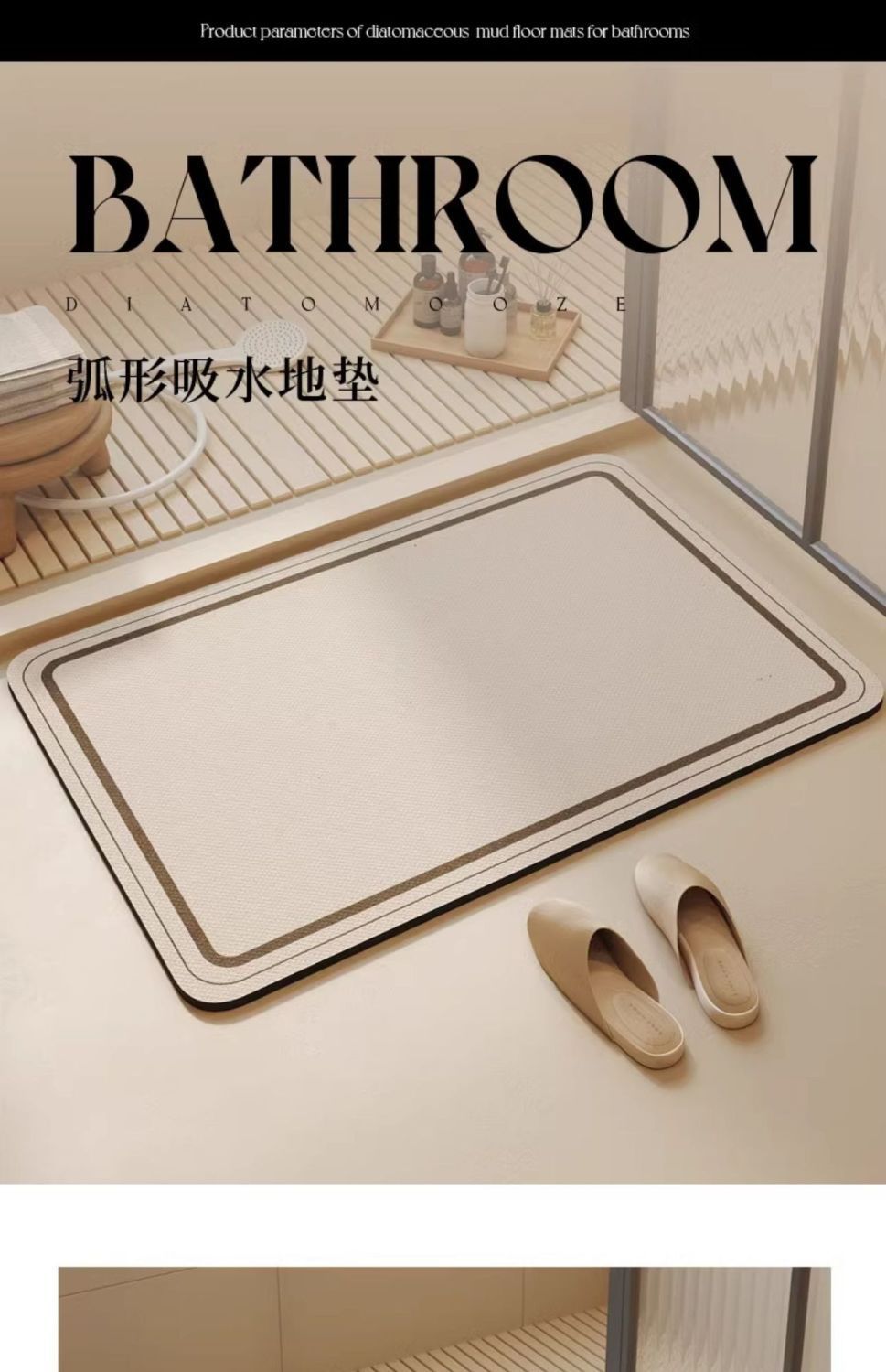욕실 규조토 진흙 바닥 매트, 가벼운 고급 크림 스타일 흡수성 발 매트, 욕실 화장실 문 흡수성 미끄럼 방지 매트
