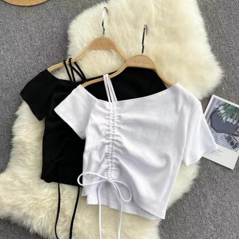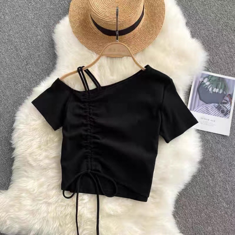 여아 여름 오프숄더 티셔츠 플리츠 2025 새로운 달콤하고 시원한 스타일 패셔너블한 디자인의 트렌디한 상의 중대형 아동용스토어 가기