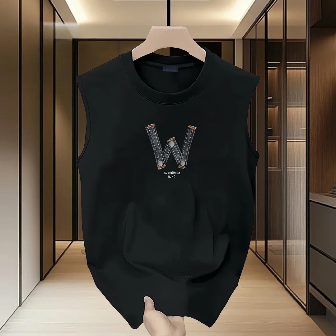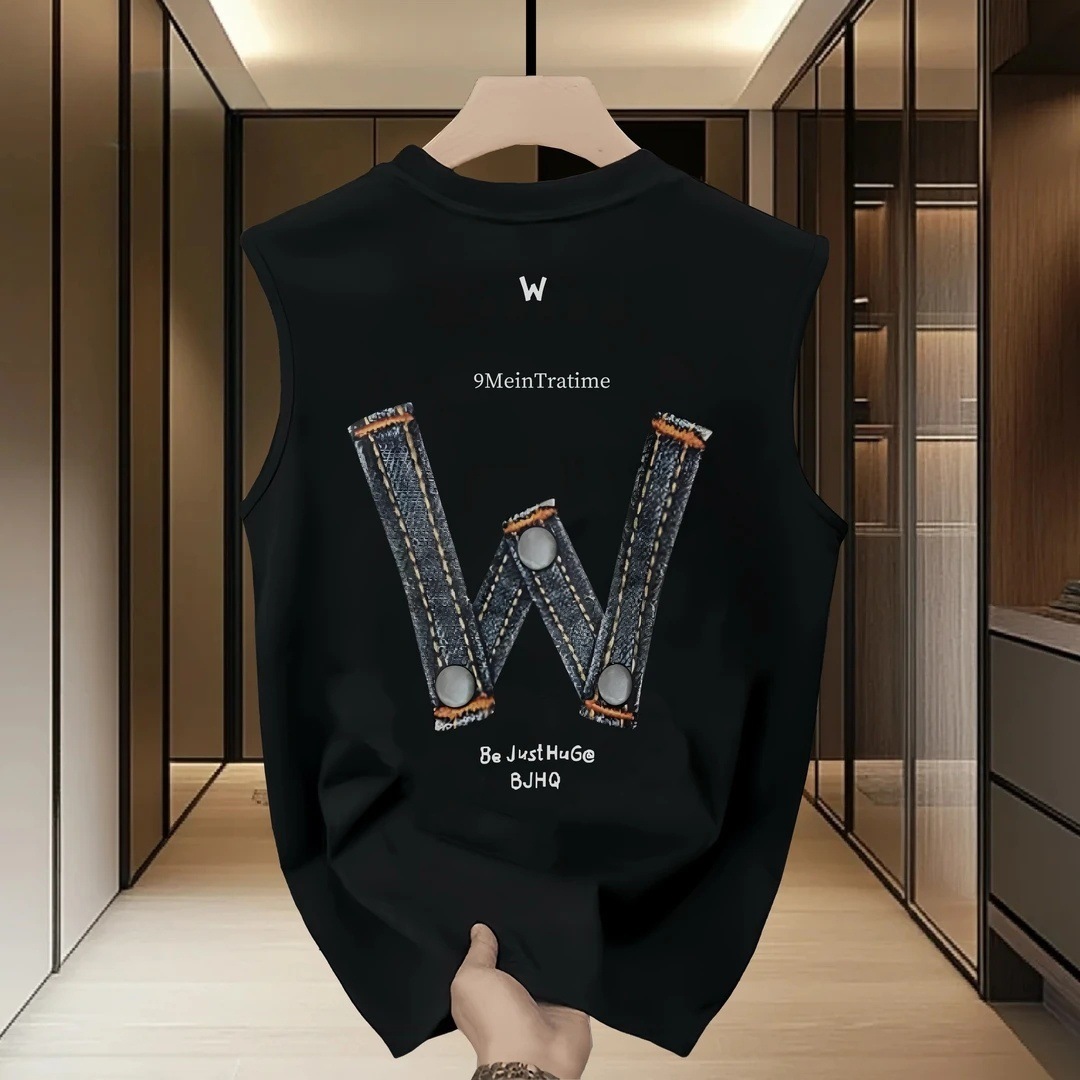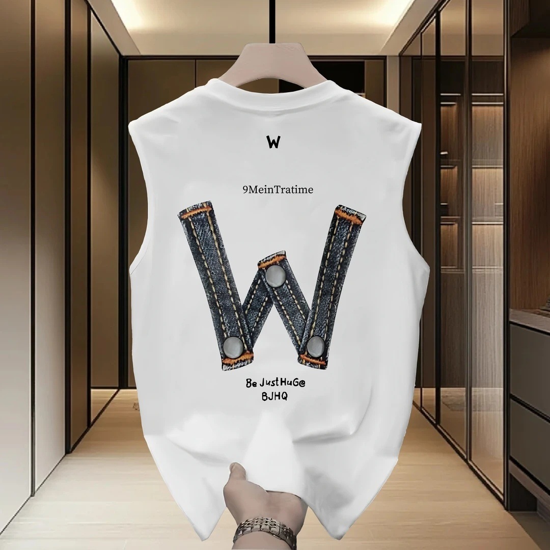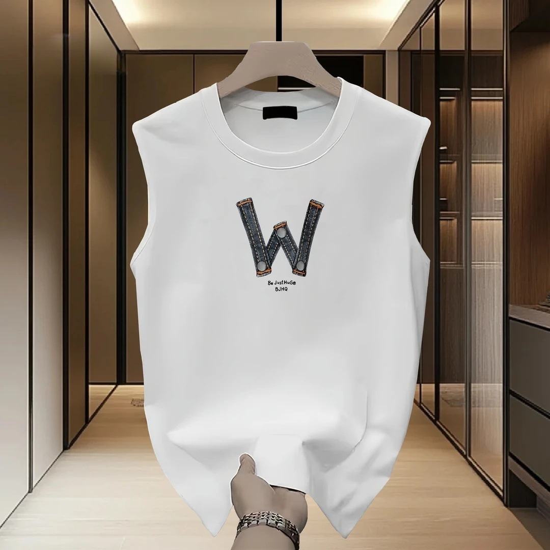 남성용 민소매 조끼, 여름 얇은 트렌디 인 레터 루즈하고 다재다능한 청소년 순면 바닥 탑스토어 가기