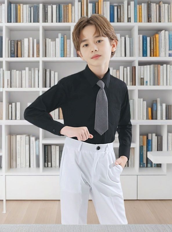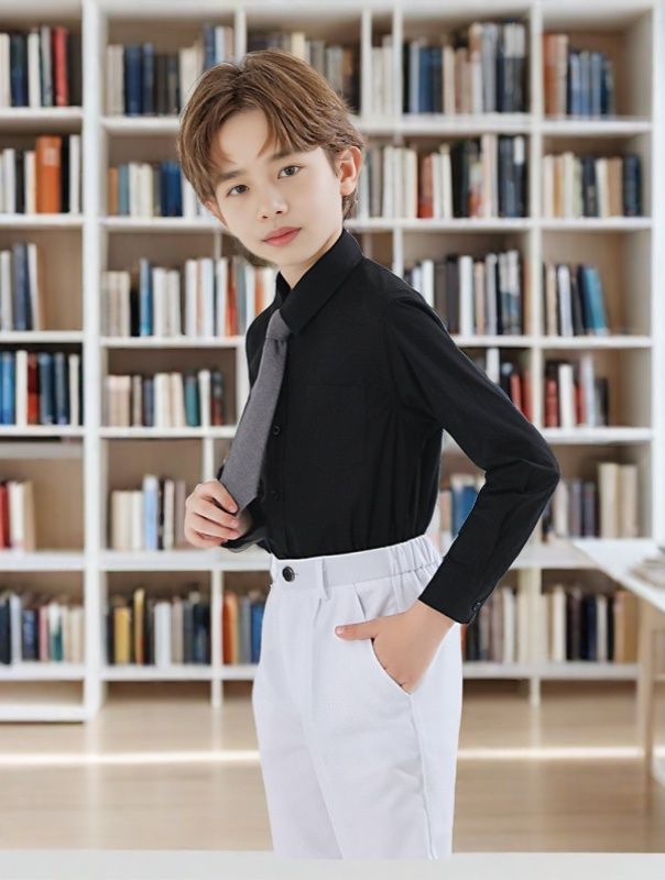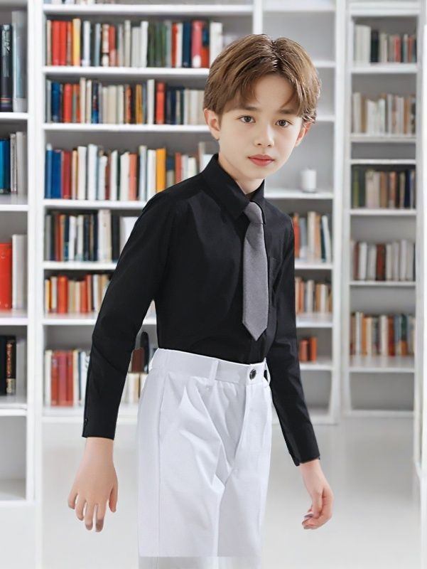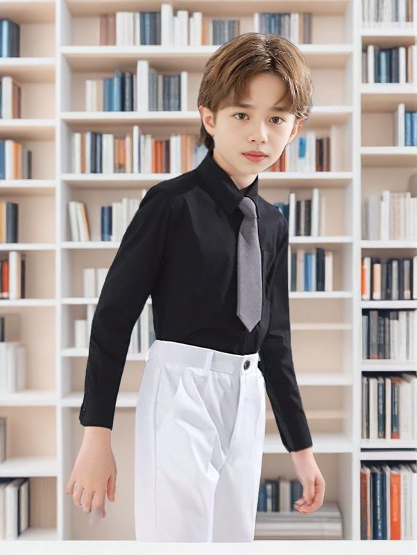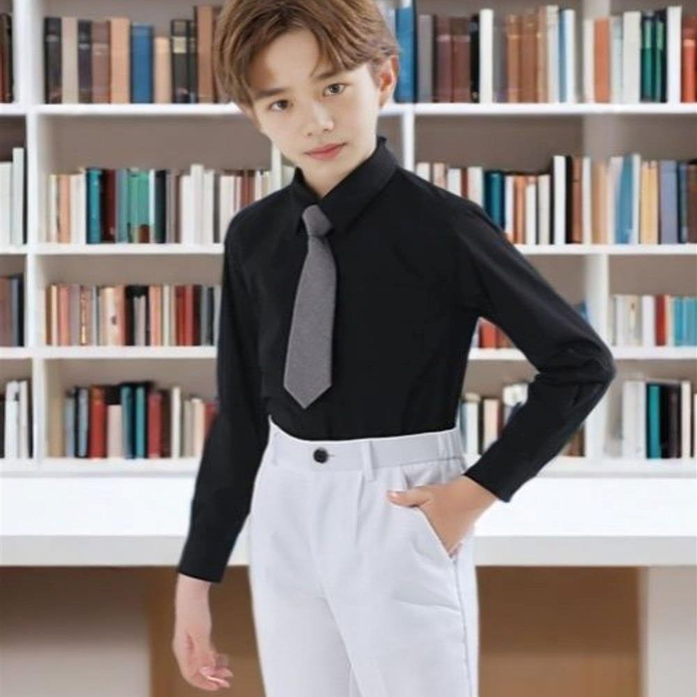 새로운 어린이 검은 셔츠 소년 긴팔 영국 대학 스타일 반팔 성능 유니폼 초등학교 교복 셔츠스토어 가기