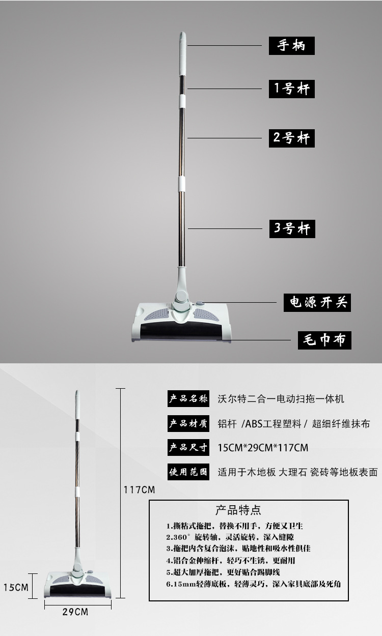 월터 로봇 진공 청소기 핸드 푸시 무선 진공 청소기 자동 충전 전기 걸레 및 빗자루 일체형 청소 기계