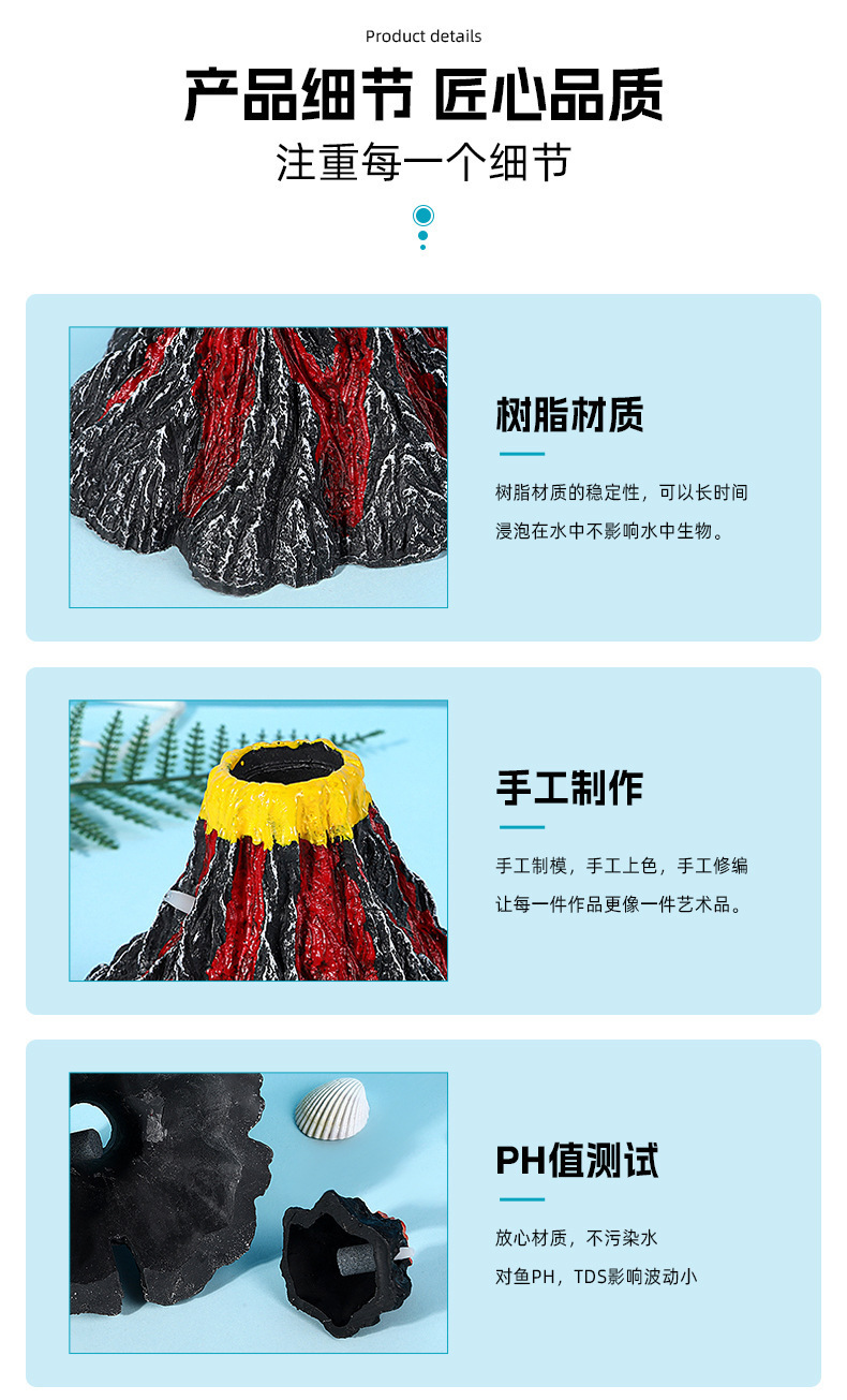 크리 에이 티브 수지 화산 조경 장식품 수족관 물고기 탱크 물고기와 새우 피난소 버블 스톤 애완 동물 용품