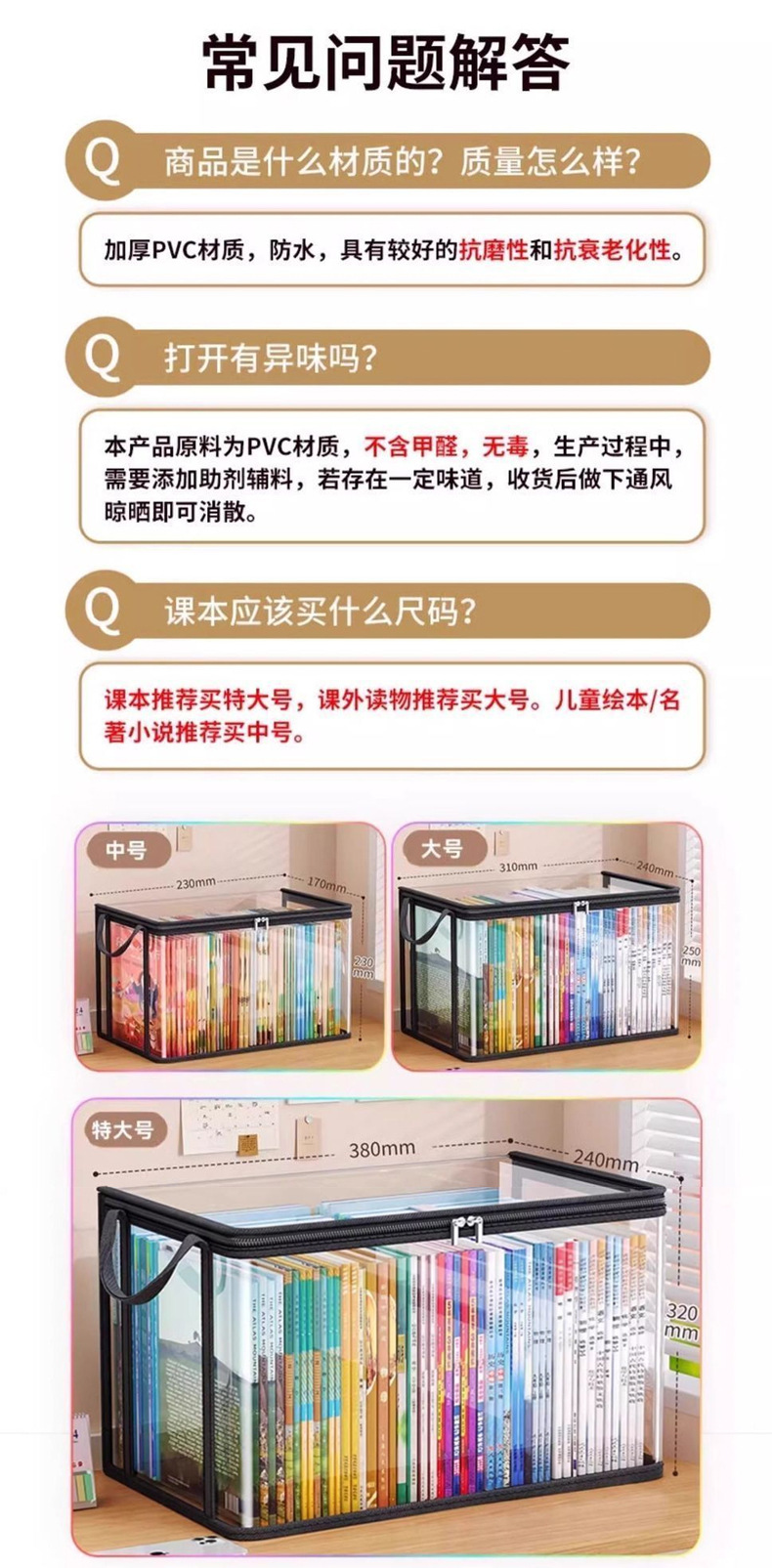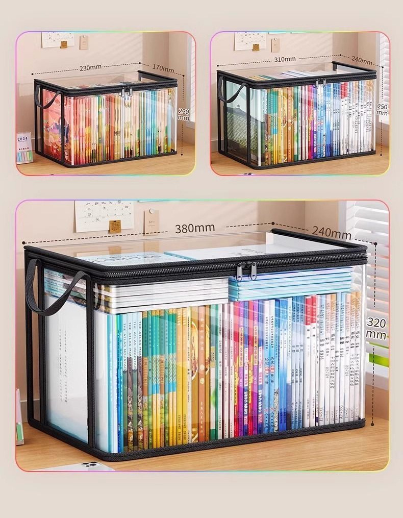 책 정리 상자 학생 교실 책 보관 상자 투명 보관 가정용 대용량 교과서 보관 가방