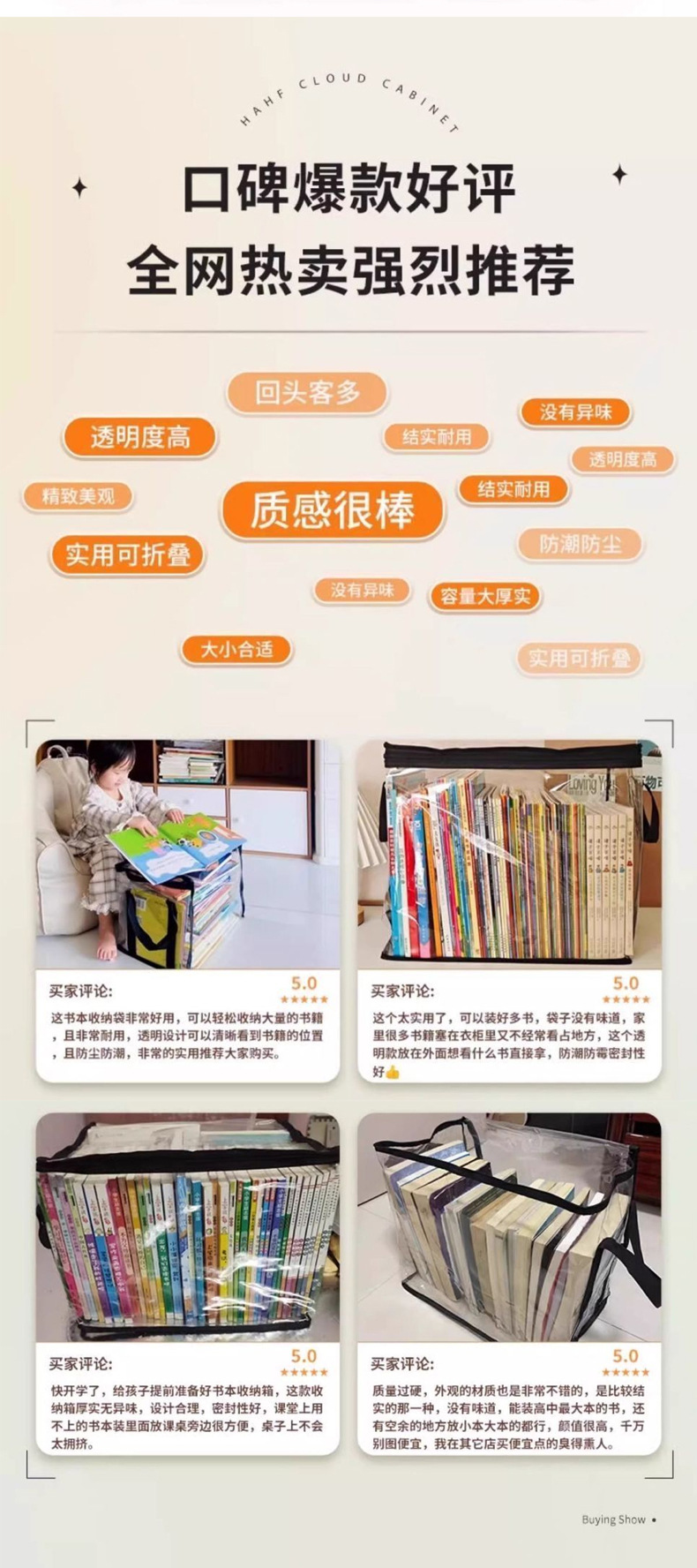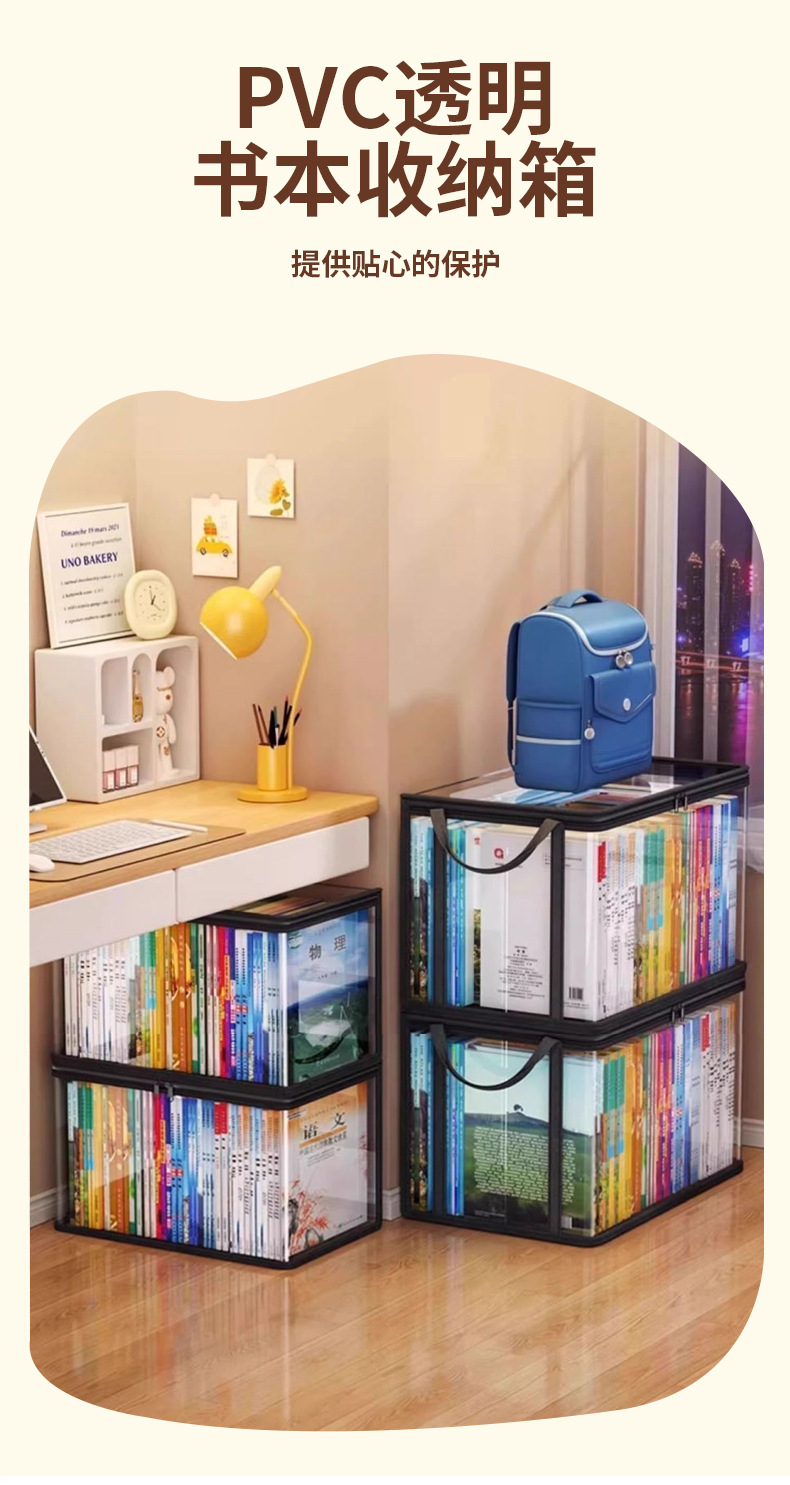 책 정리 상자 학생 교실 책 보관 상자 투명 보관 가정용 대용량 교과서 보관 가방스토어 가기