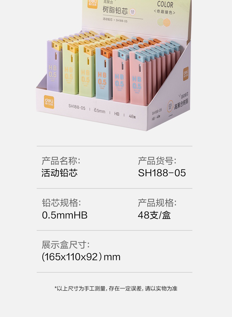 Deli SH188 이동식 리드 0.5 0.7mm 연필심 자동 리드 리필 학생용 리드 도매스토어 가기