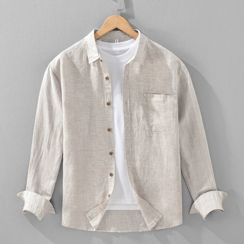 2513 봄 여름 원사 염색 리오셀 린넨 긴팔 셔츠 남성 캐주얼 스퀘어 칼라 통기성 하이 엔드 린넨 셔츠스토어 가기