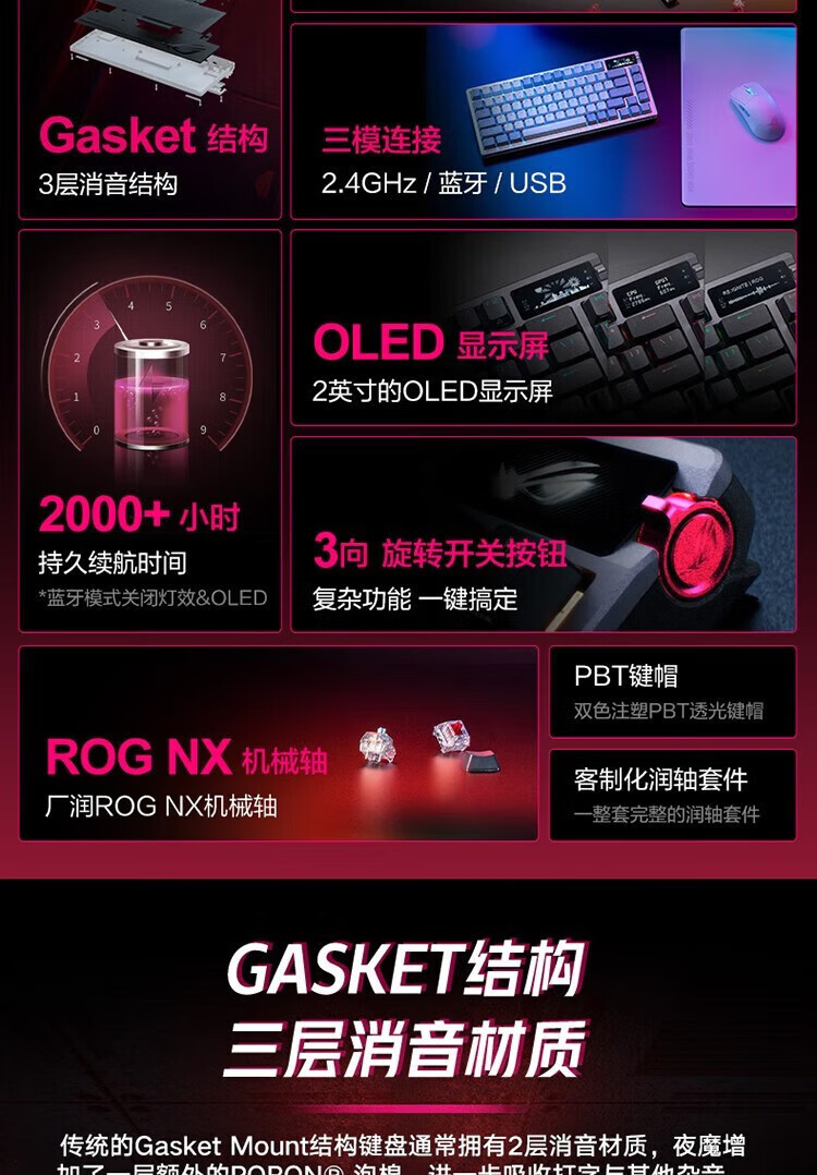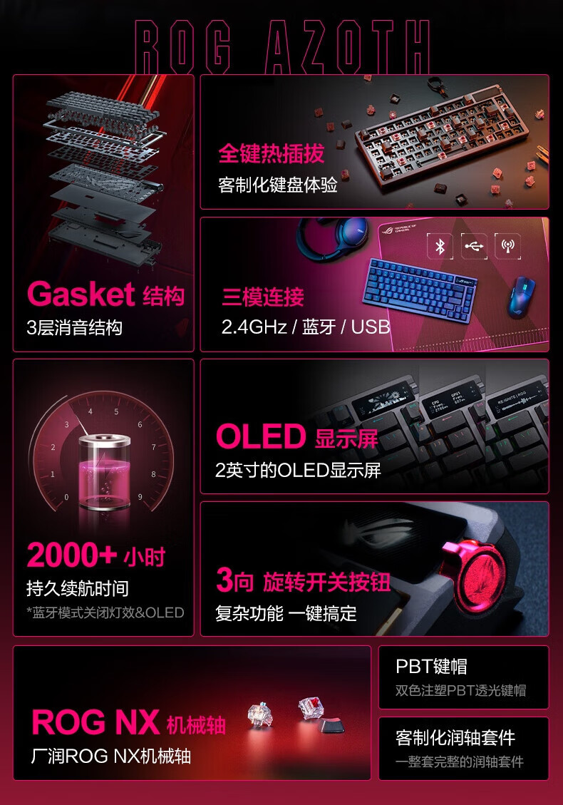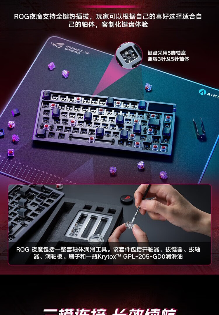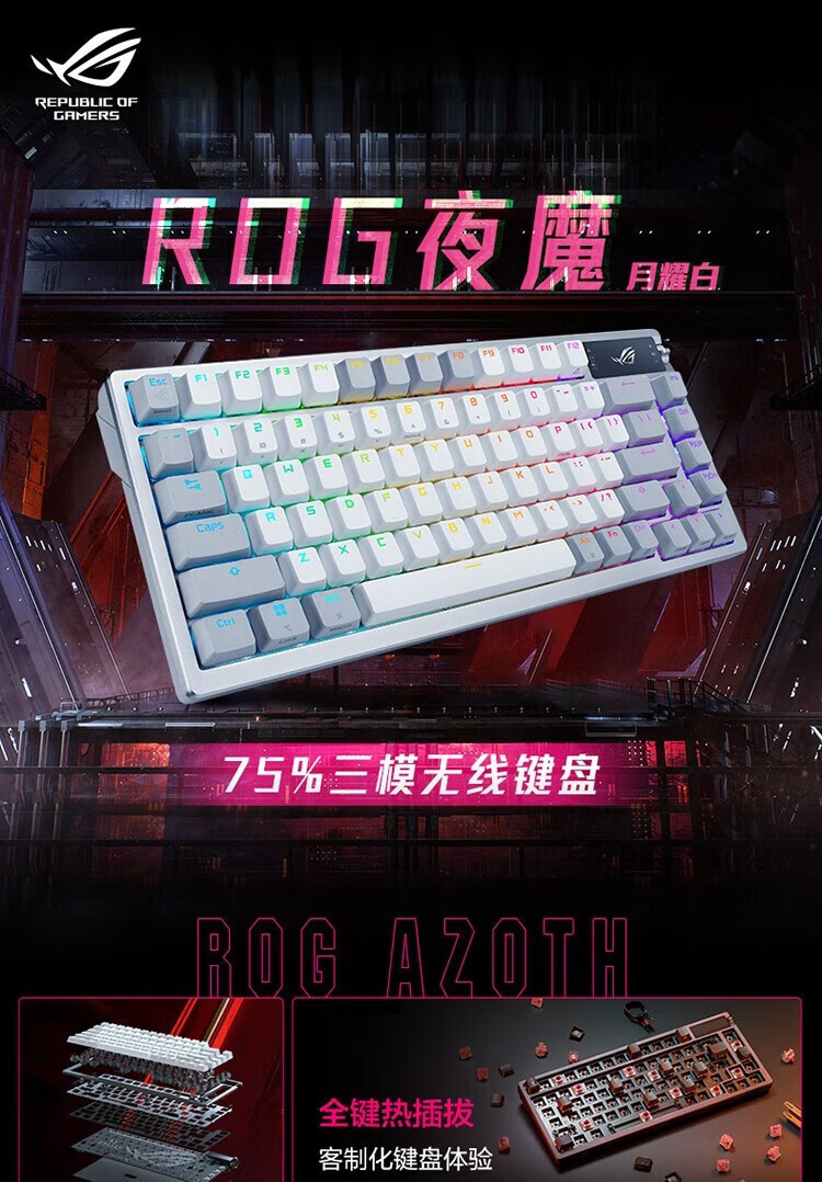 ROG Nightdevil 기계식 키보드 무선/블루투스 3 모드 게임 키보드 75 RGB 핫 플러그