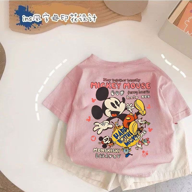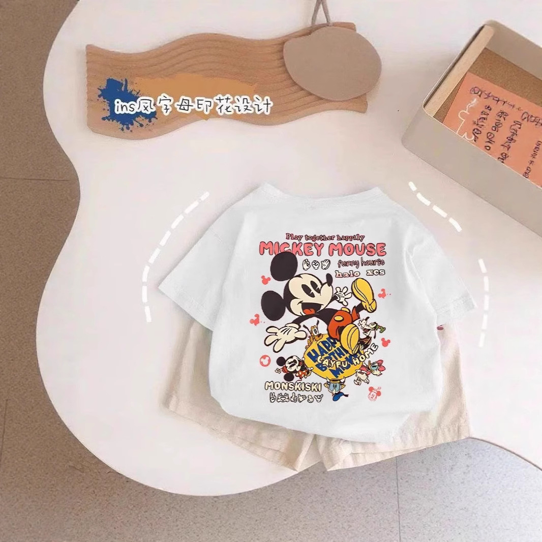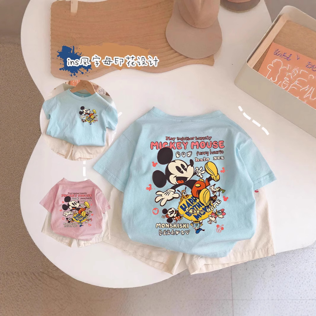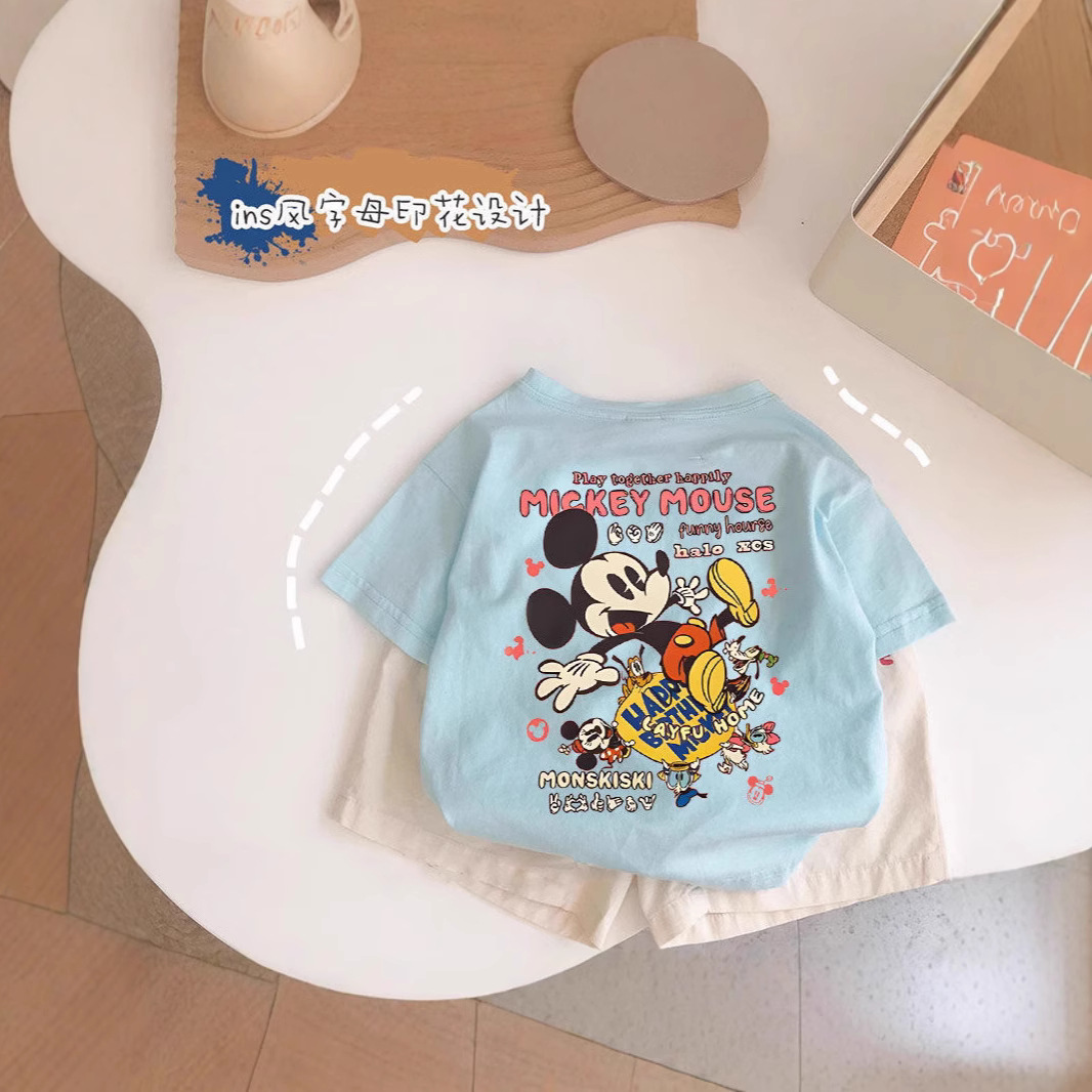 어린이 면 반팔 티셔츠 2025 봄과 여름 새로운 만화 인쇄 탑 스타일 느슨한 아기 옷스토어 가기