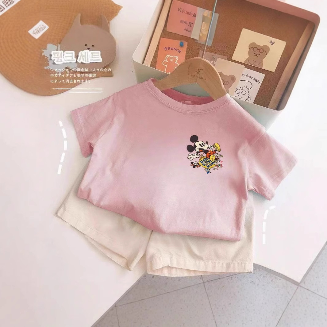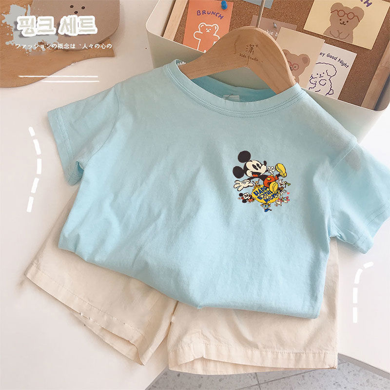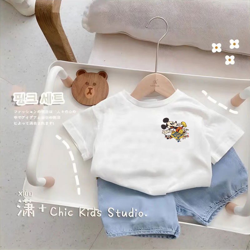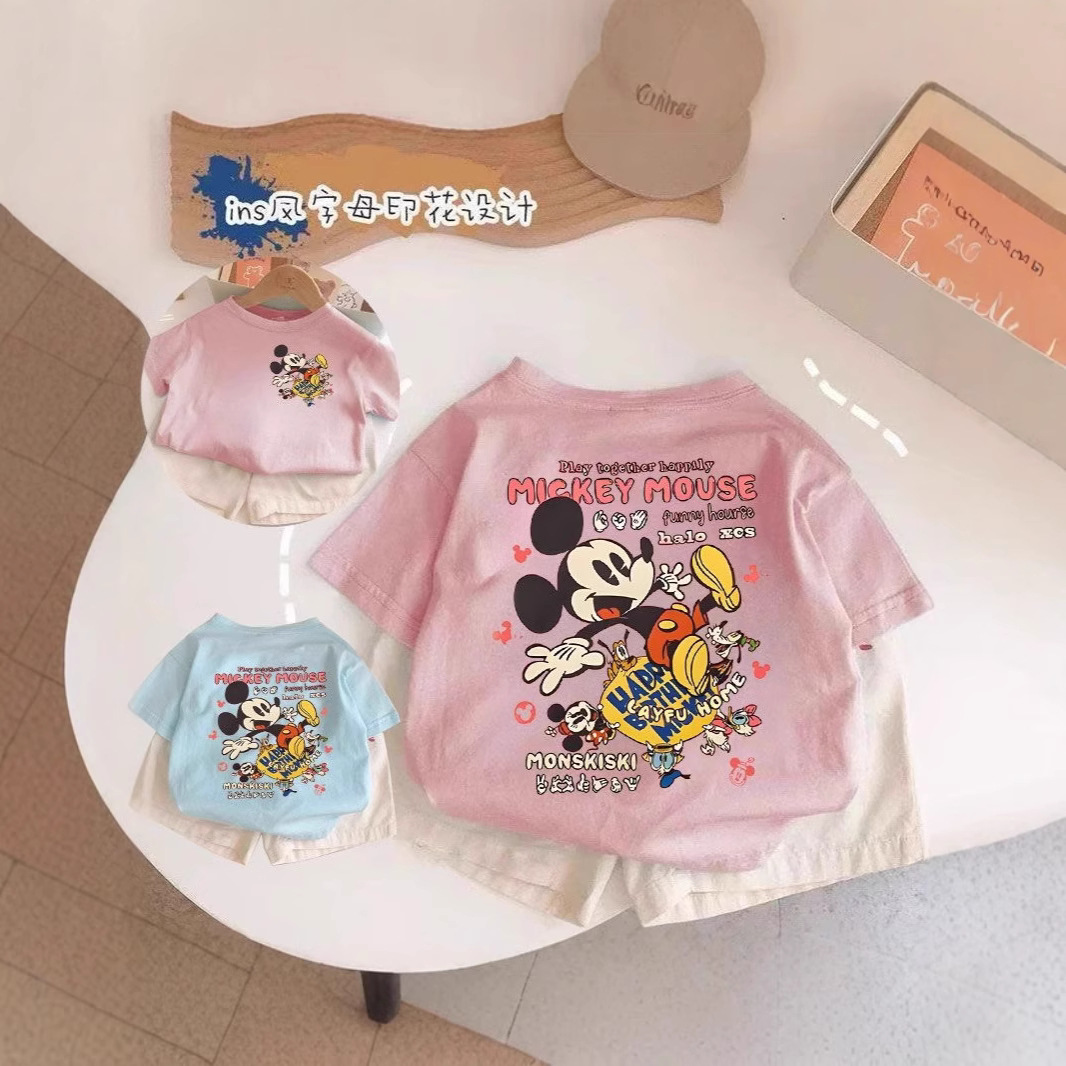 어린이 면 반팔 티셔츠 2025 봄과 여름 새로운 만화 인쇄 탑 스타일 느슨한 아기 옷스토어 가기