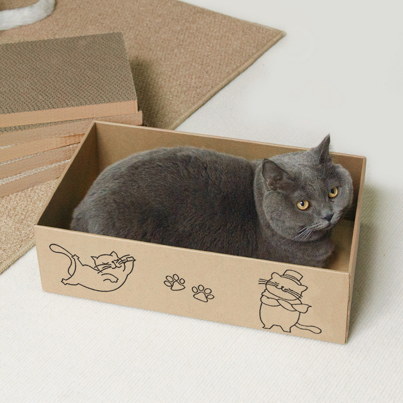 국경을 넘는 고양이 장난감 골판지 상자 세트 고양이 스크래치 보드 부스러기 없음 내마모성 고양이 발톱 연삭 장난감 고양이 둥지스토어 가기