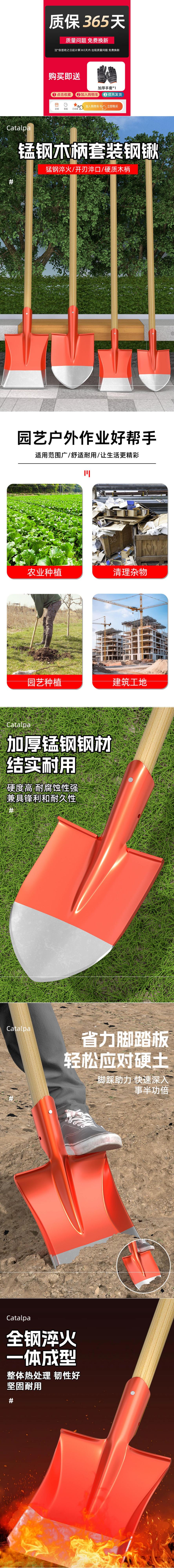 • 두꺼운 망간강 대형 팁 삽 1.2m 메뚜기 나무 손잡이에는 장갑이 함께 제공됩니다.