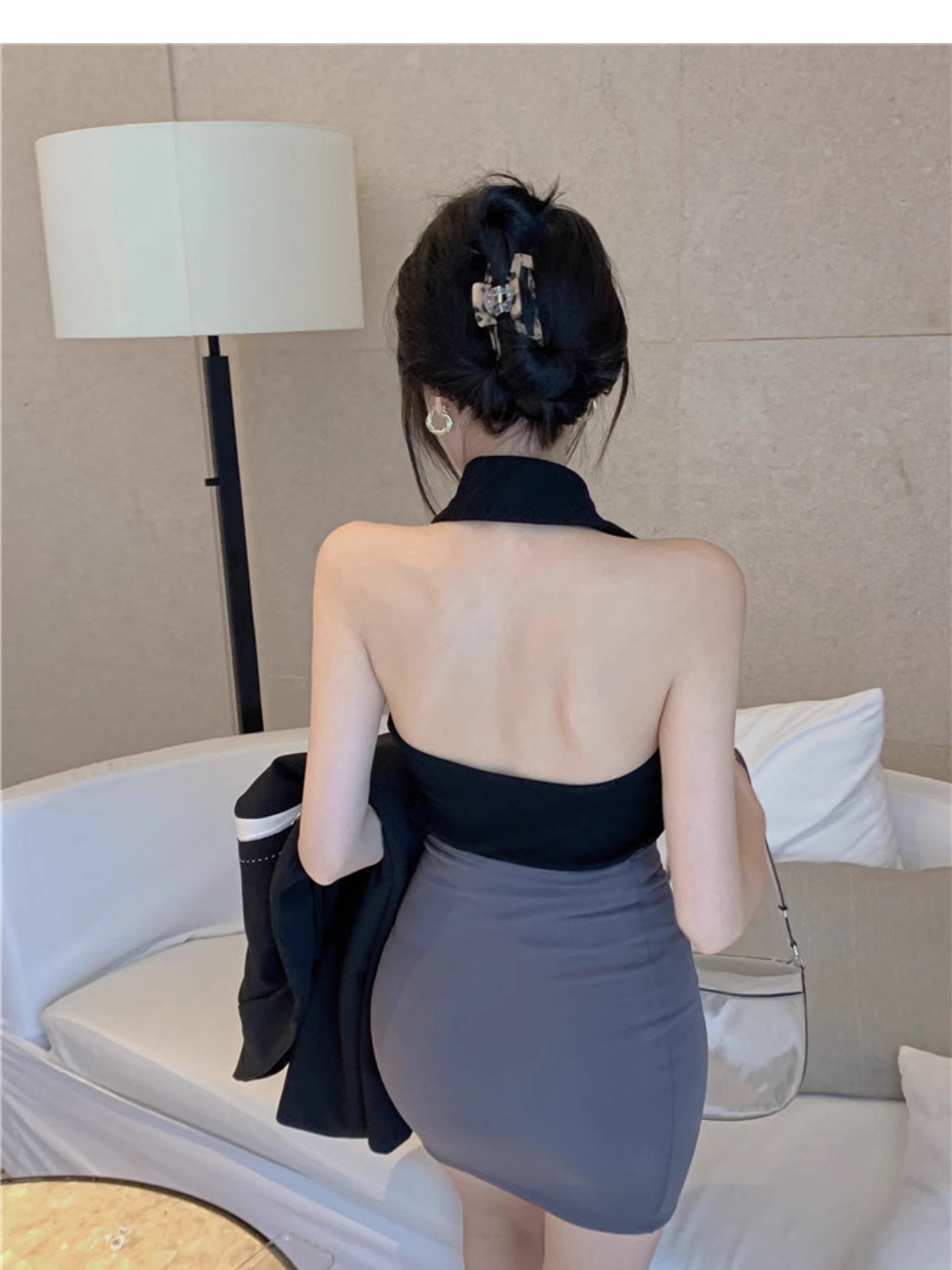 여성을위한 회색 꽉 엉덩이 스커트 2024 봄 순수한 욕망 스타일 작은 뜨거운 소녀 섹시한 스커트 하이 웨이스트 미니 스커트