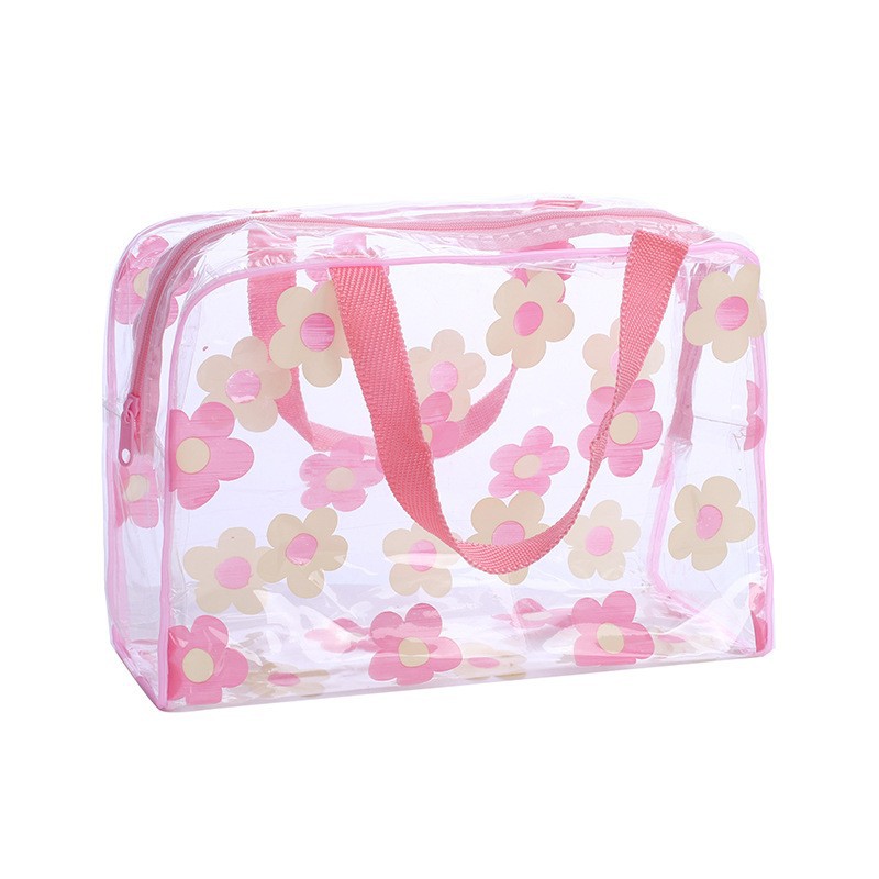 세면도구 가방, 두꺼운 꽃무늬 반투명 방수 세면도구 가방, 목욕 화장품 가방, 여행용 휴대용 수납 세면도구 가방