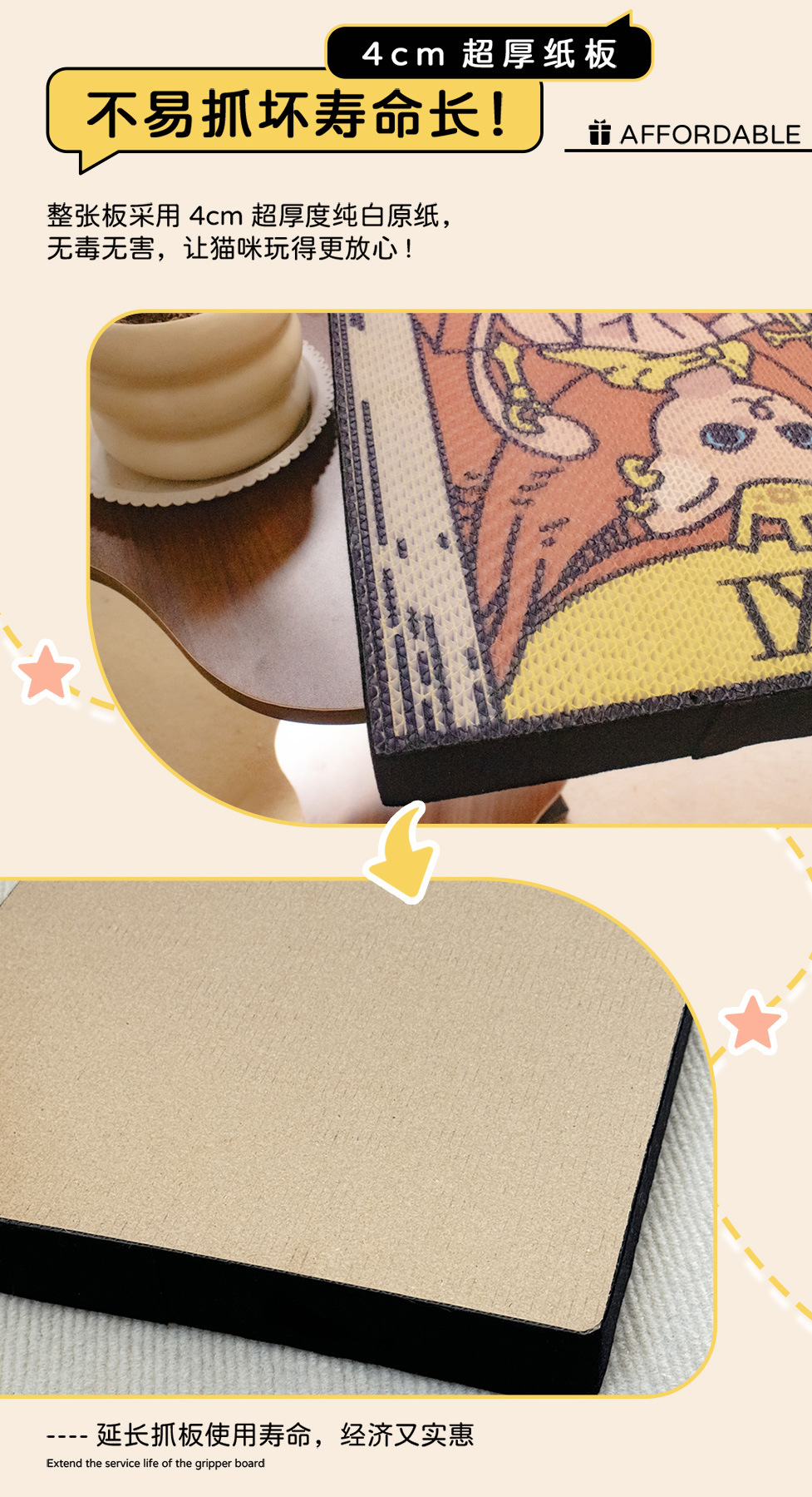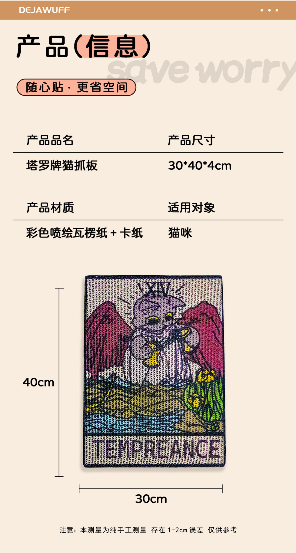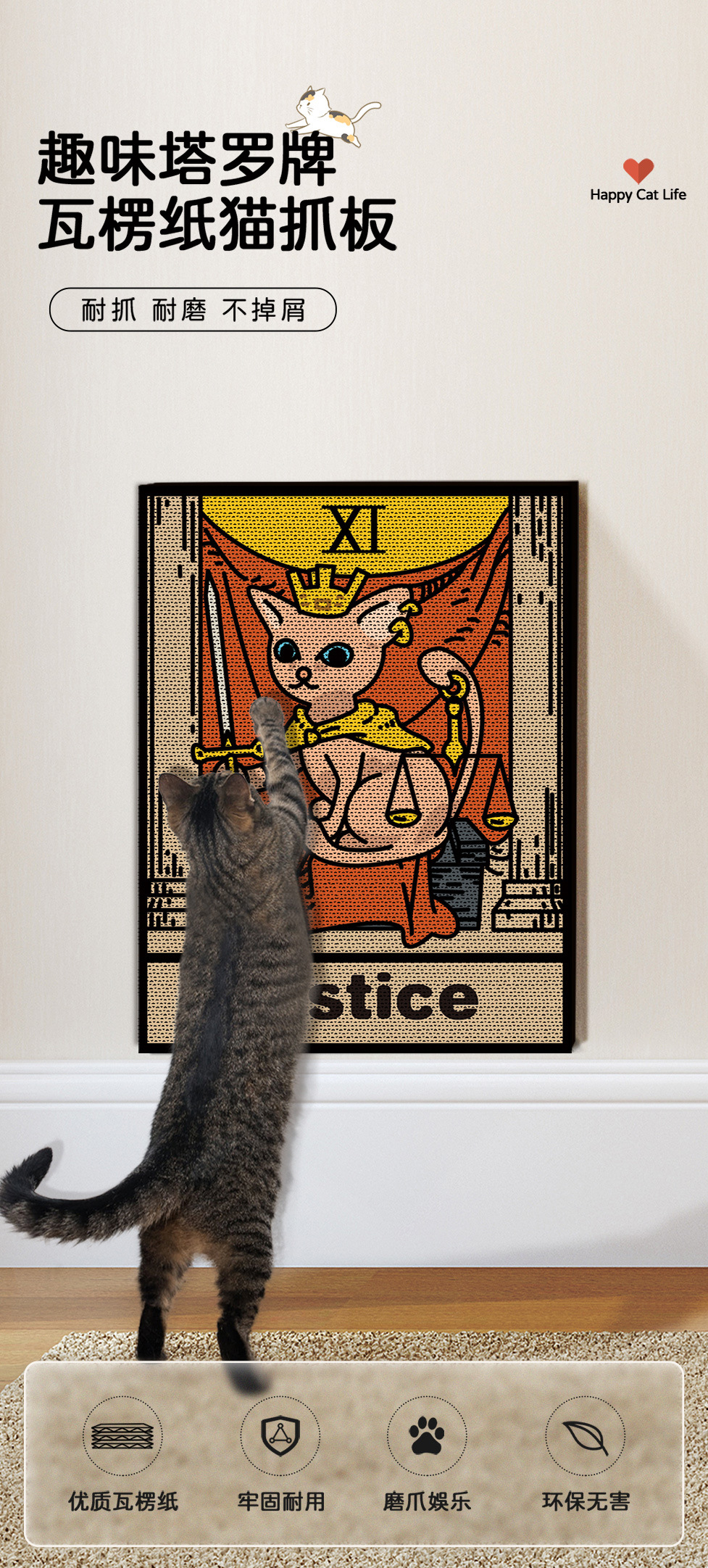 대형 타로 고양이 긁는 보드 수직 벽 골판지 비 흘리기 거실 침실 소파 대형 고양이 발톱 보드스토어 가기