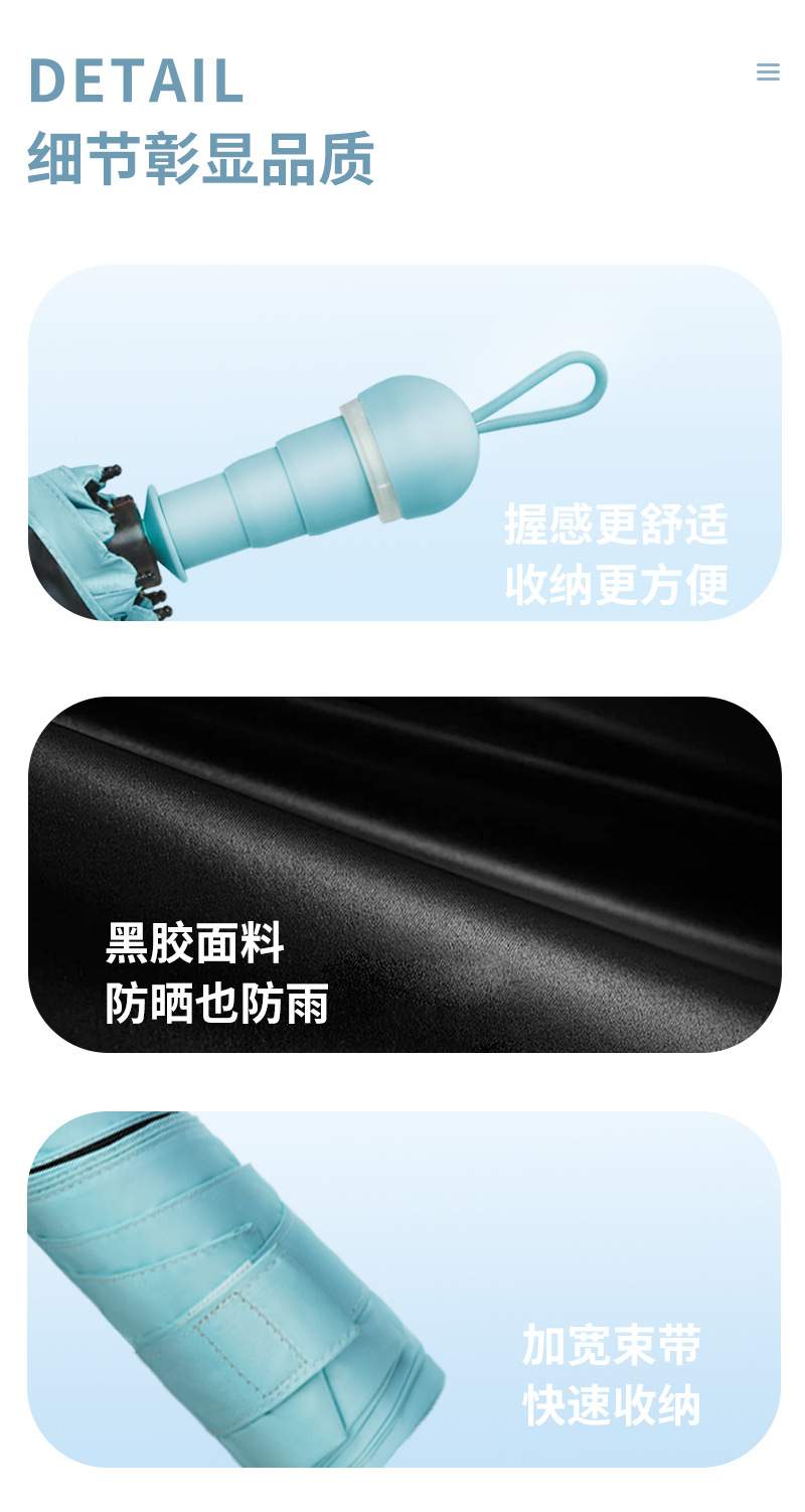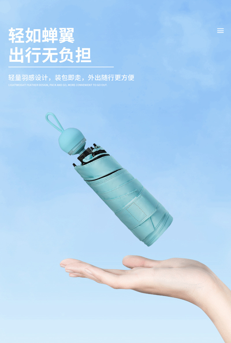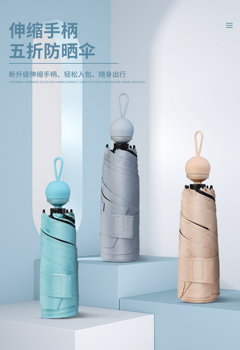 국경 간 뜨거운 판매 개폐식 숨겨진 손잡이 선 스크린 5 배 캡슐 우산 써니 및 비오는 이중 사용 소형 휴대용 양산 우산스토어 가기