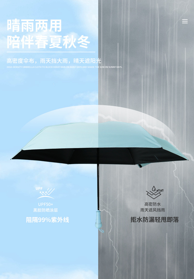 국경 간 뜨거운 판매 개폐식 숨겨진 손잡이 선 스크린 5 배 캡슐 우산 써니 및 비오는 이중 사용 소형 휴대용 양산 우산
